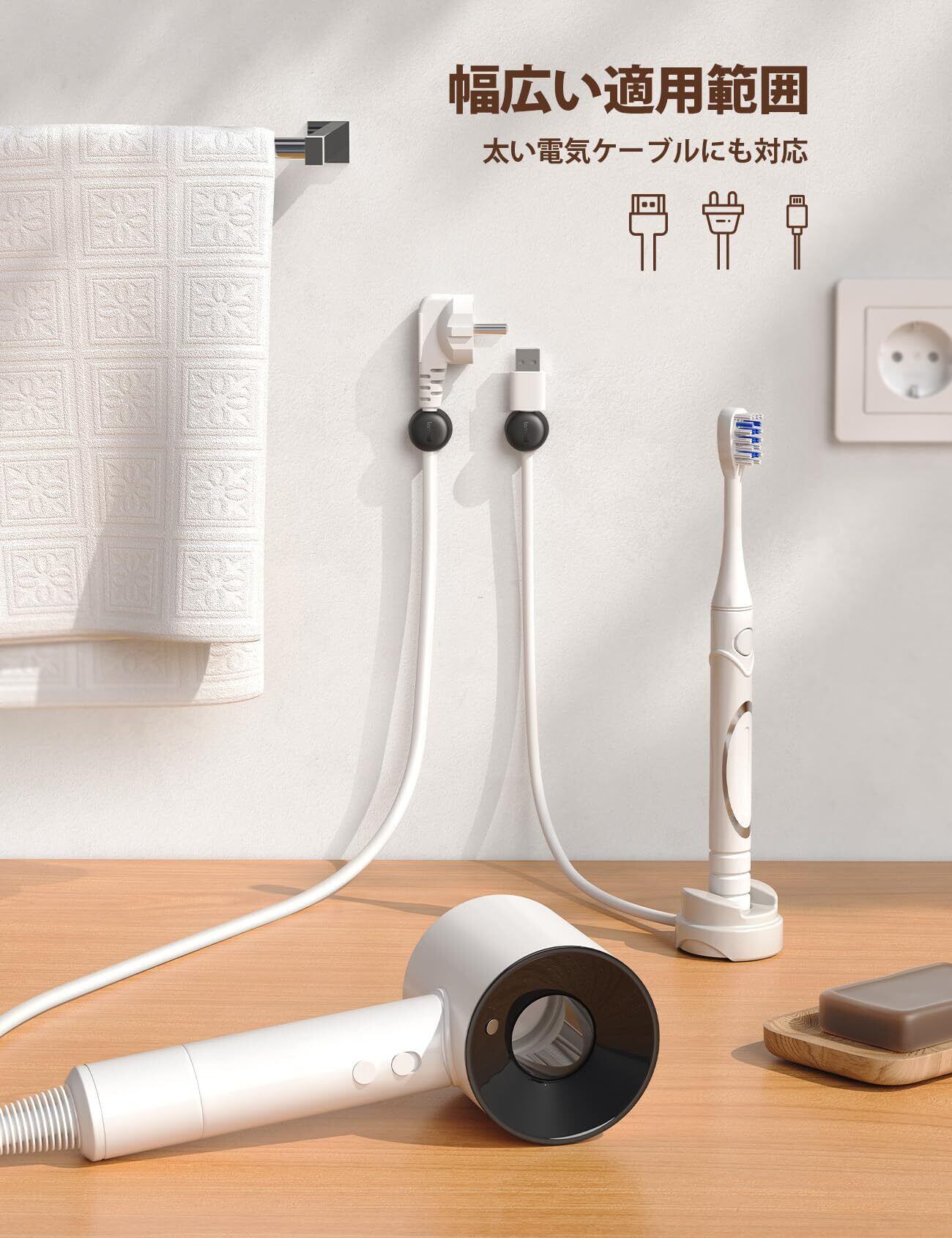 【簡単な取り付けと強力な固定力!】強力粘着テープを使用しているため、取り付けが簡単で、壁やデスクにしっかりと固定できます。プラスチック製で耐久性もあり、太めのコードでもしっかり保持しますので、安心してお使いいただけます。