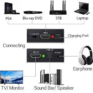 PS4対応に向けの4K 光デジタル 音声分離器 HDMI:4K 2K@30HZまでの解像度に対応する音声分離器が主流のゲーム機、例えば:PS4,PS4 Slim,PS4 Proなどのデバイスに互換性があります。音質の向上や音の方向性や距離感をクリアにすることができる音声分離器です。ゲーミングなどでの利用が最適なアイテムです。