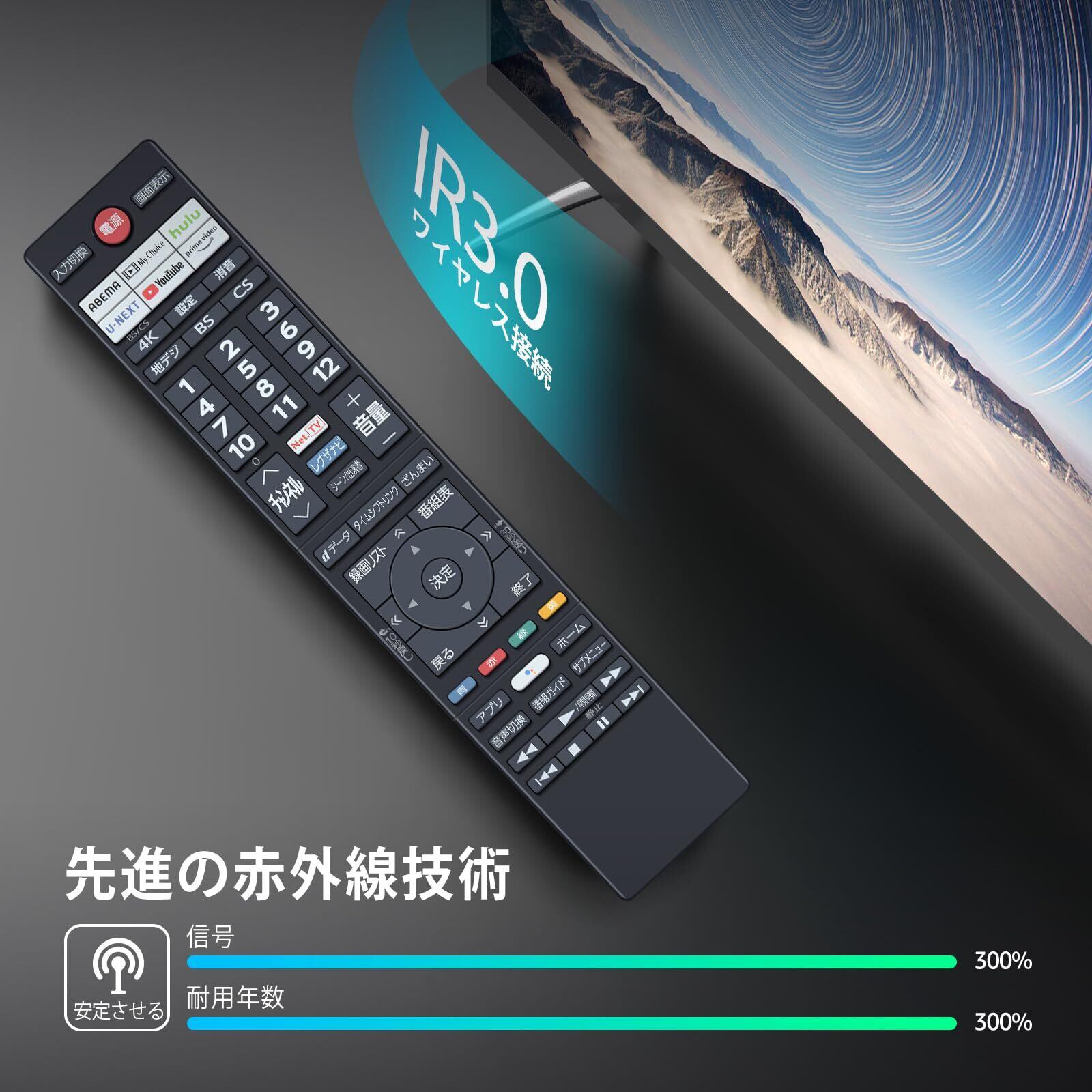 【高い操作距離と広範囲を実現!】広角赤外線を搭載しており、操作距離は約8メートル、角度も広いため、部屋の隅々からでもスムーズに使用できます。これにより、より自由なテレビ視聴が楽しめます。