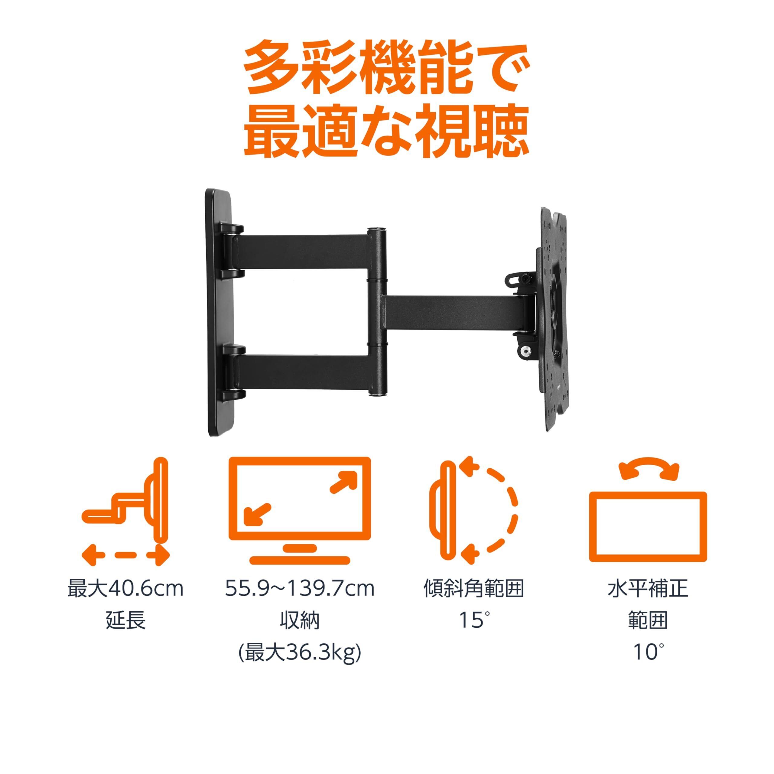 ベーシック テレビ壁掛け金具 フルモーション 26~55インチ対応 テレビ用 最大36kg ブラック