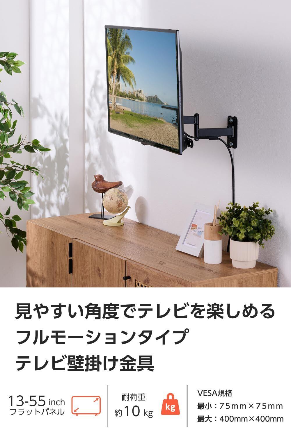 エレコム 壁掛けテレビ金具 フルモーション式 13~55インチ対応 【上下・左右・回転】 耐荷重10kg ケーブルホルダー付き ブラック TWM-FS01BK