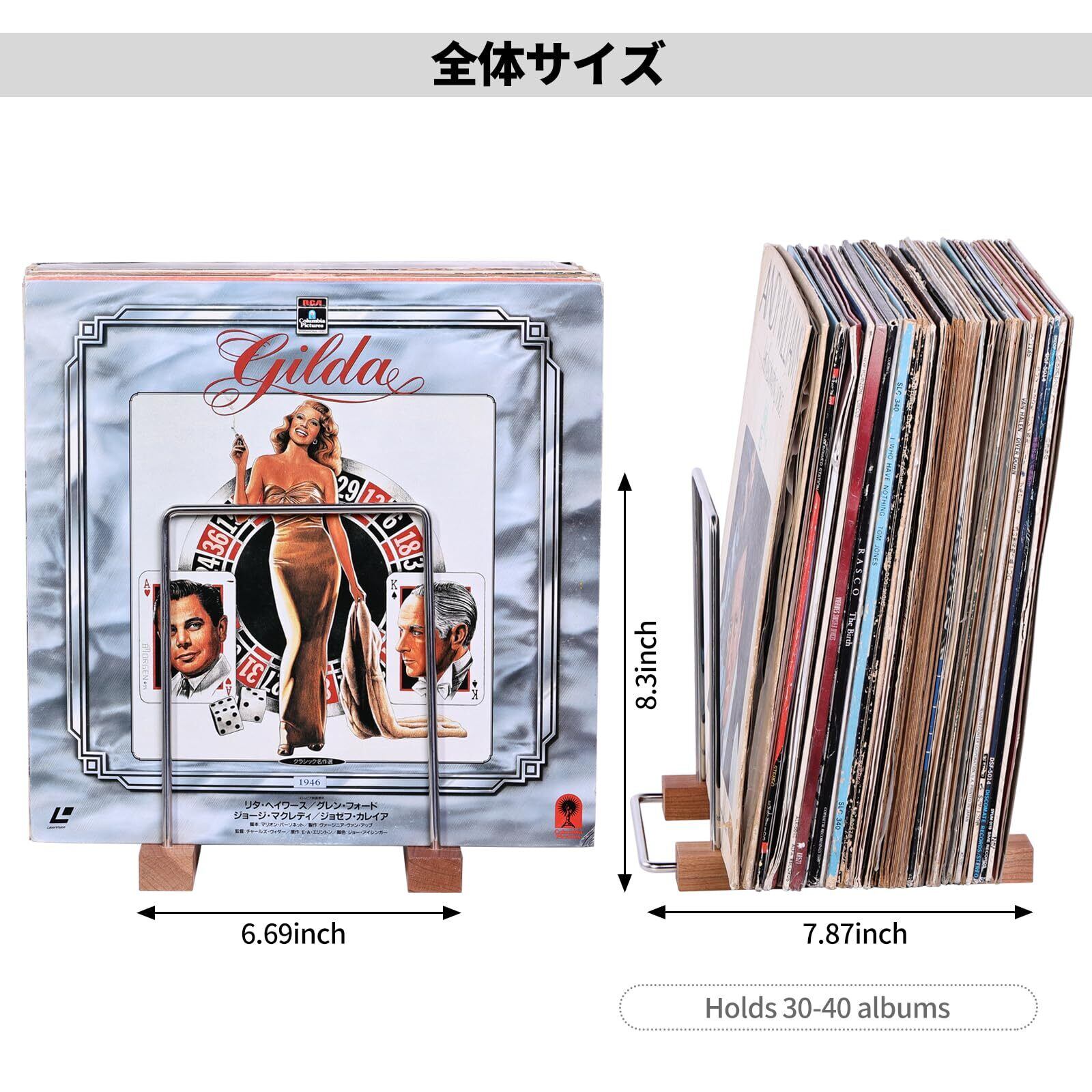 収納棚の容量:12インチのレコードを約30-40枚収納可能で、悩んでいたレコードやLP,CDの収納がスッキリと理想的に片付きます。