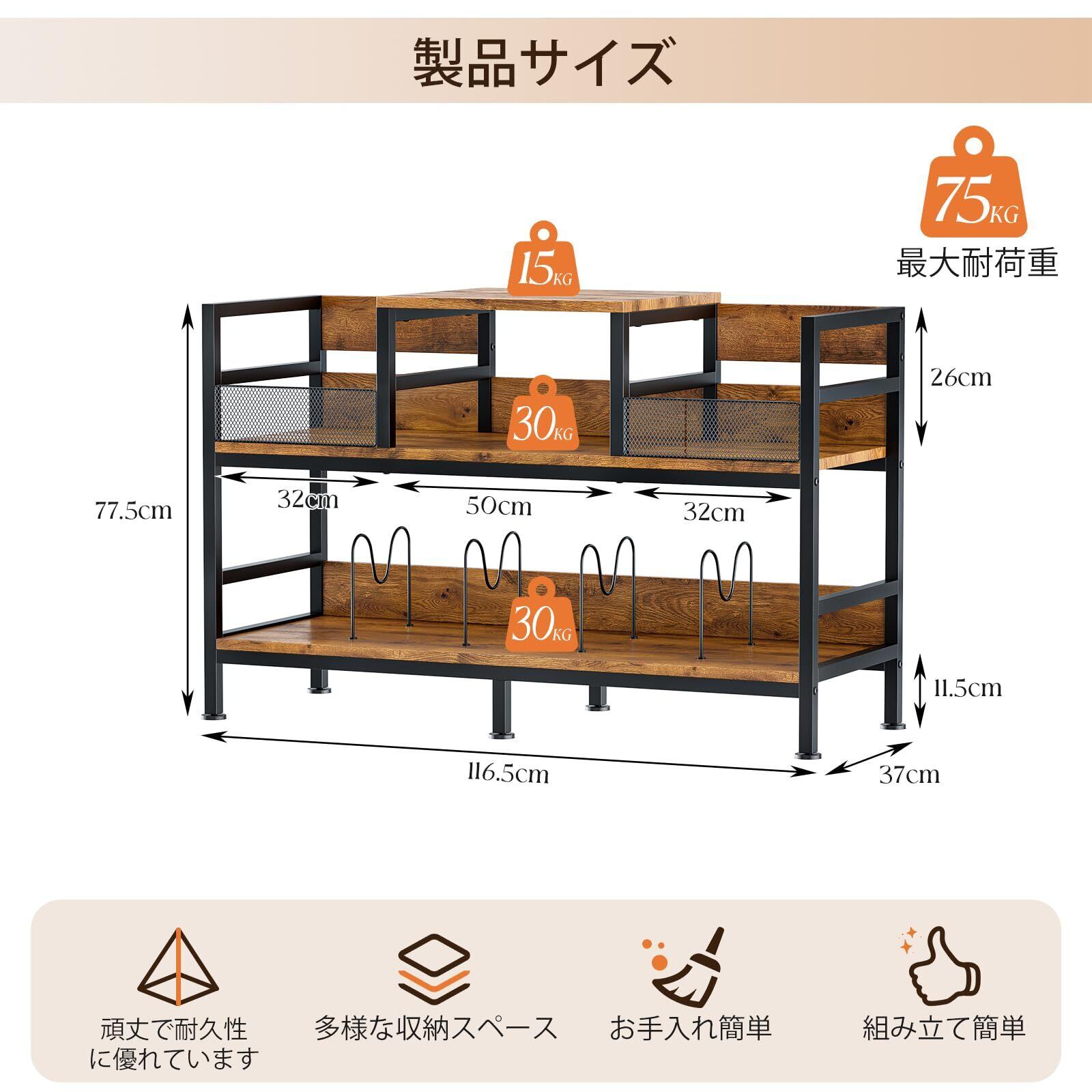 特徴 オーディオ機器収納スペース, スチールフレーム, メッシュバックパネル, 木目調シェルフ, 耐荷重設計