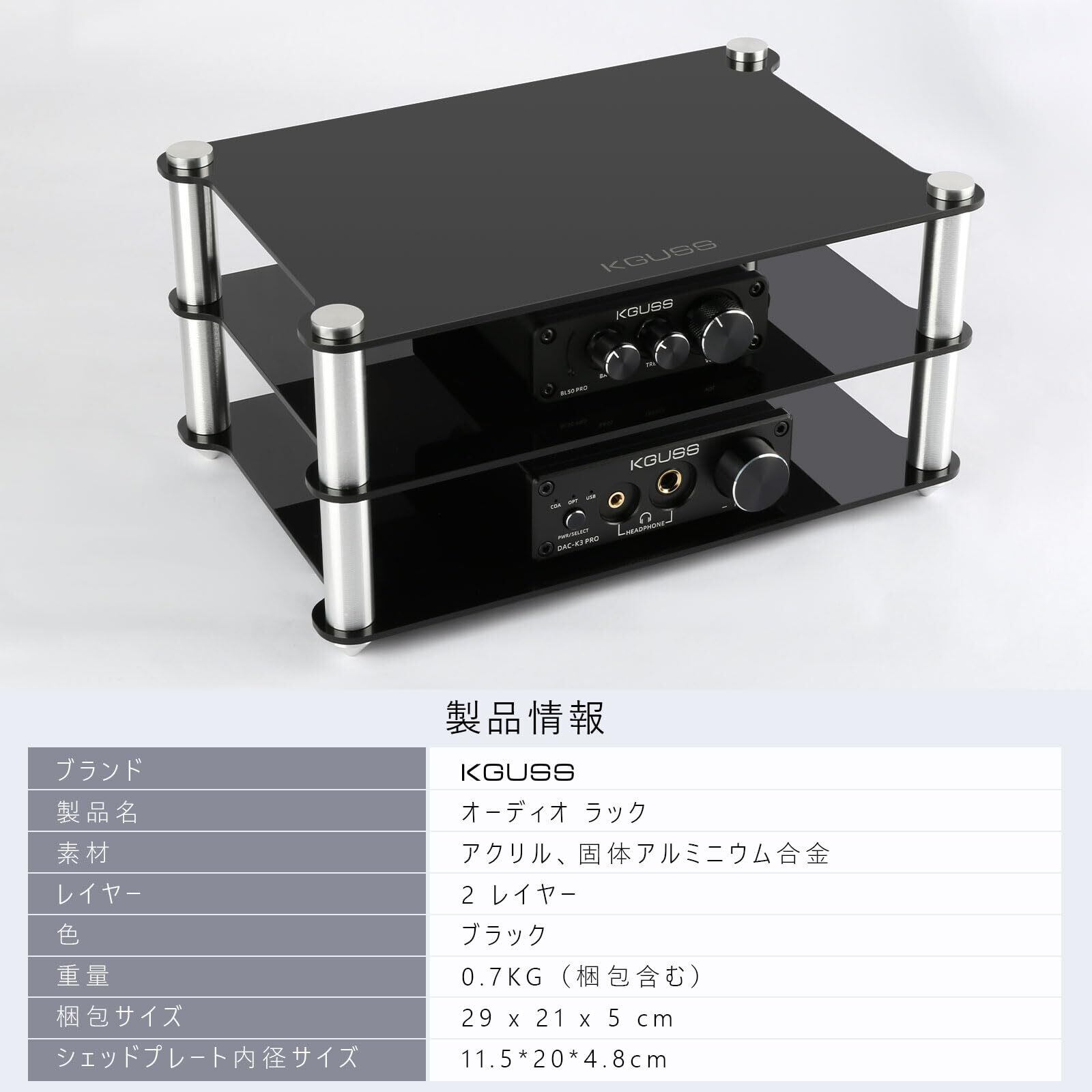 【音楽体験をさらに向上させるデザイン!】このKGUSSオーディオラックは、シンプルながらスタイリッシュなデザインが特徴です。アルミニウム合金製の耐久性ある設計で、USB DACやパワーアンプを美しく収納し、あなたのオーディオシステムを一段と引き立てます。