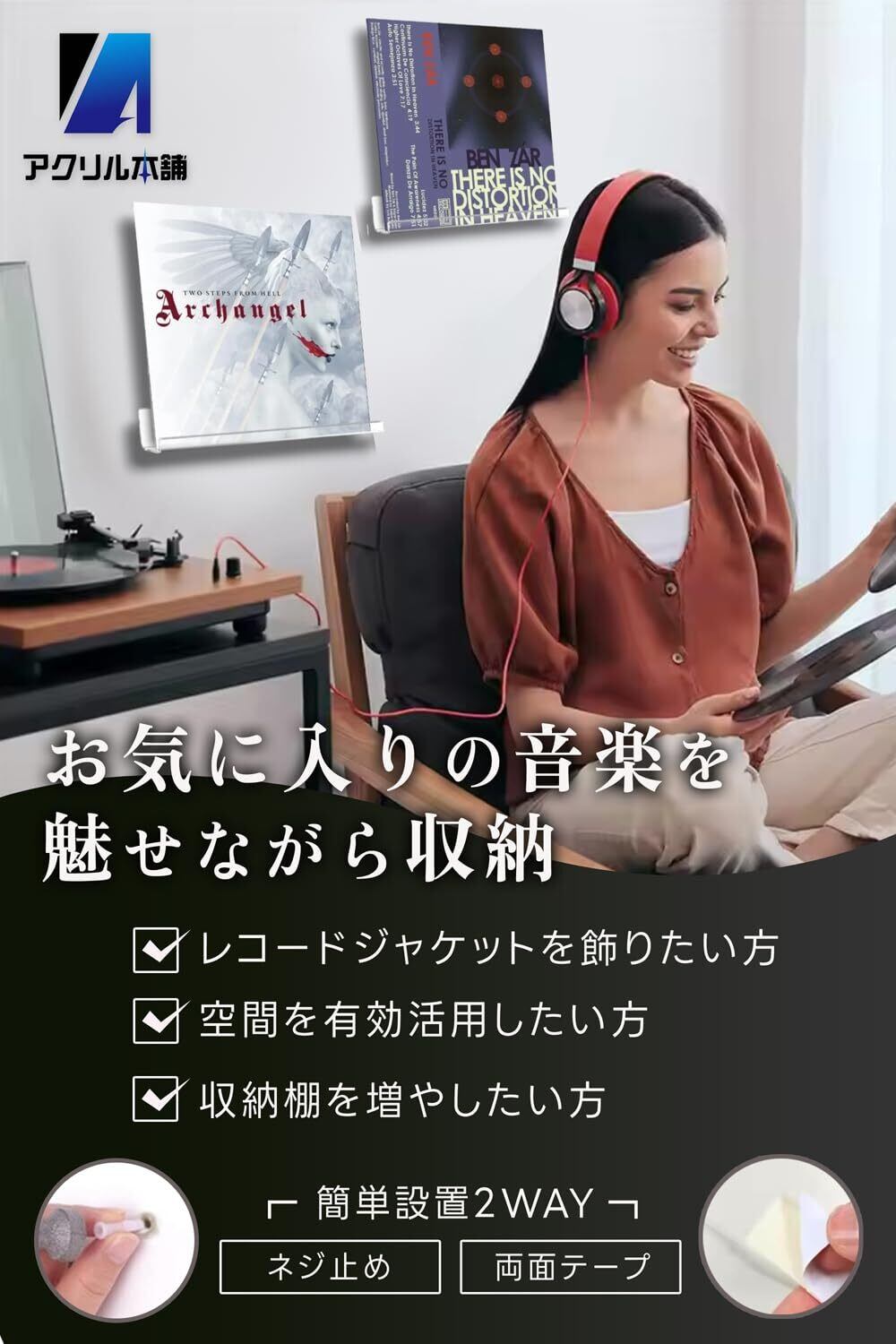 アクリル本舗 レコードラック 壁掛け ディスプレイ 透明 収納 アクリル製 (ブラック, 4個セット)