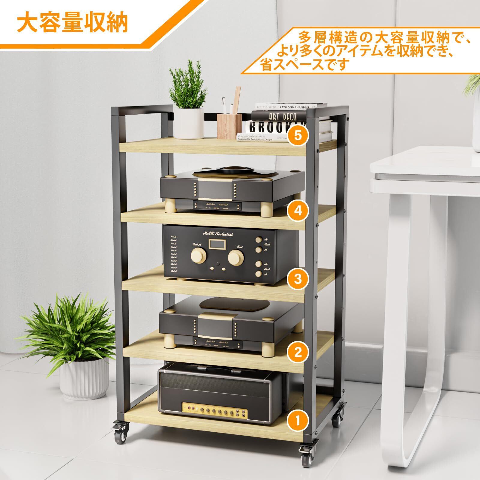 【多様な収納ニーズに対応!】コーナーラックとしても使用可能なこの商品は、リビングや寝室の限られたスペースを最大限活用し、お気に入りのオーディオ機器や本を見せる収納が可能です。オープンデザインにより、機器の熱を逃がしやすく、アクセスも簡単です。