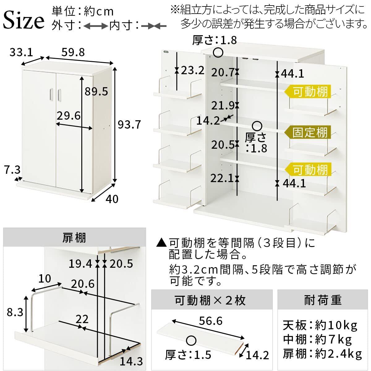 ※2024年7月12日仕様変更しました。(ブラックのみ:材質が変更) / ※2023年1月26日仕様変更しました。(ダークブラウンの販売が終了)※2021年8月10日仕様変更しました。(カラーにウォールナット、オークが追加)(商品重量、梱包重量が変更)※2021年4月22日仕様変更しました。(ホワイトのみ:ストッパーのカラーが変更)※2019年12月19日仕様変更しました。(全カラー:棚板の厚み・棚板の耐荷重が変更)(全カラー:商品重量・梱包サイズ・梱包重量が変更)カラーにより若干仕様変更のタイミングが異なります。以前に同商品をご購入された方は、一度お問い合わせ下さい。※2019年4月16日仕様変更しました。(全カラー:商品重量・梱包サイズ・梱包重量が変更)※2018年3月6日仕様変更しました。(扉内側の収納ラック耐荷重が変更)