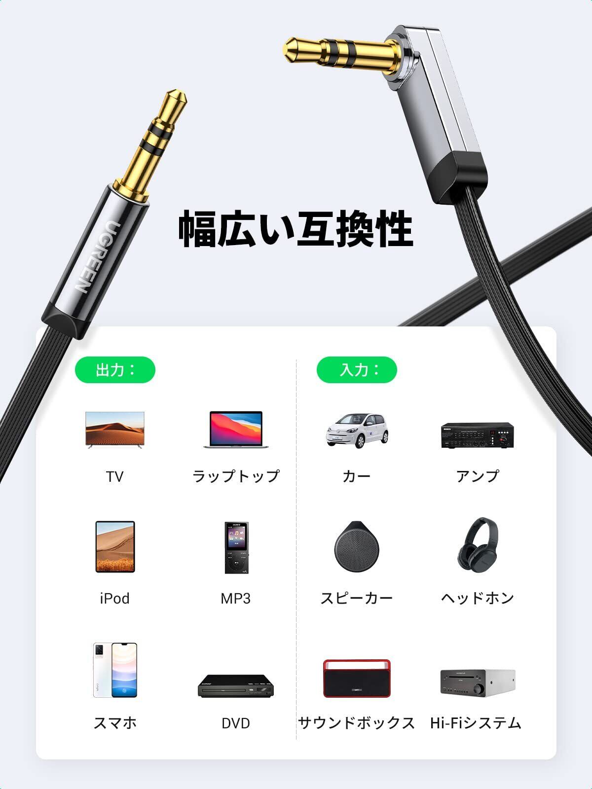 UGREEN オーディオケーブル aux ケーブル 片側L字 ステレオミニプラグ AUX 3.5mm 3極 オス-オス 高音質 イヤホンジャック 金メッキプラグ 高耐久性 3.5mm オーディオケーブル ヘッドホン/スピーカー/カーステ/ホームステレオ/iPad/iPod/PCなどに対応 1M