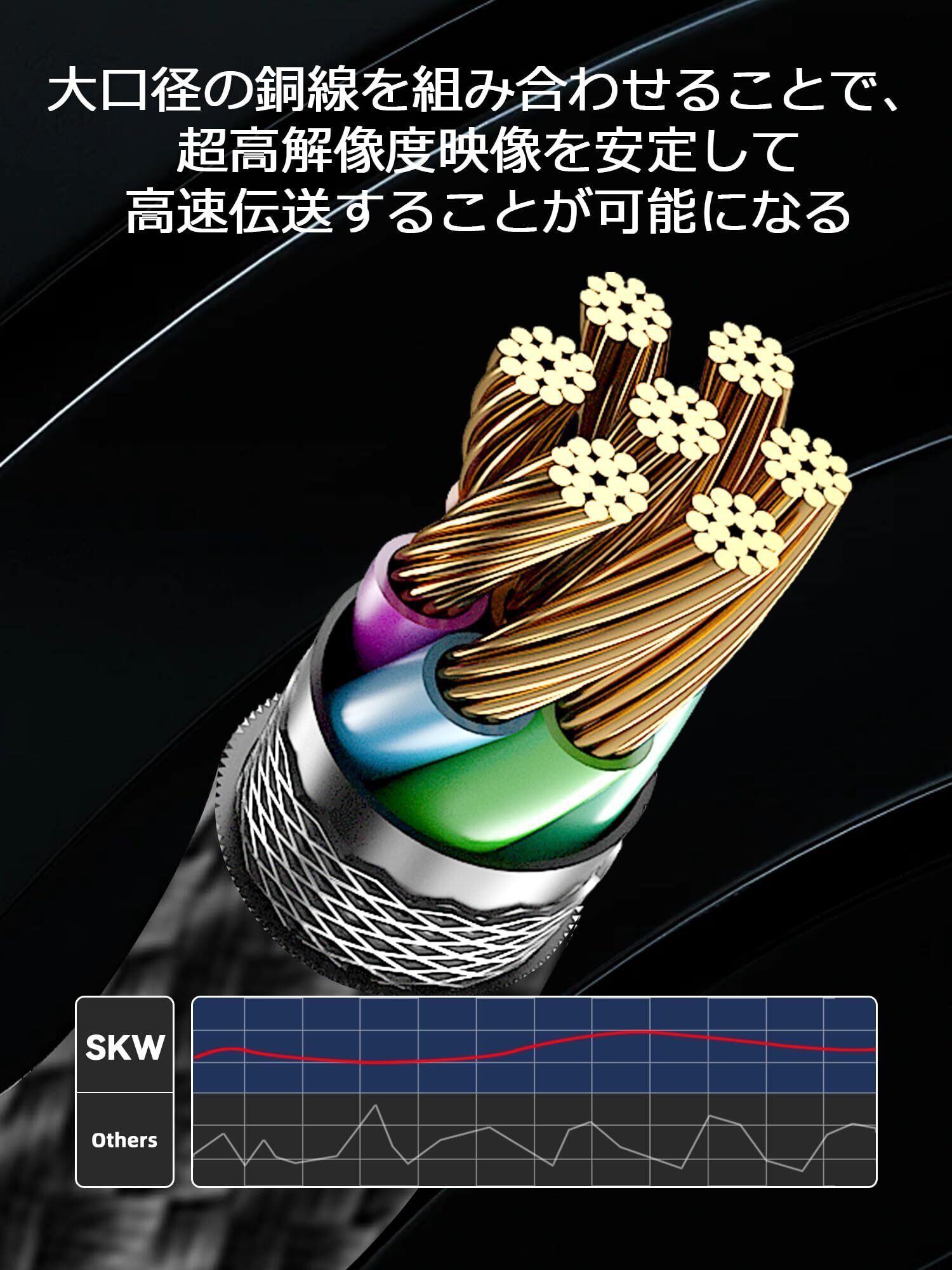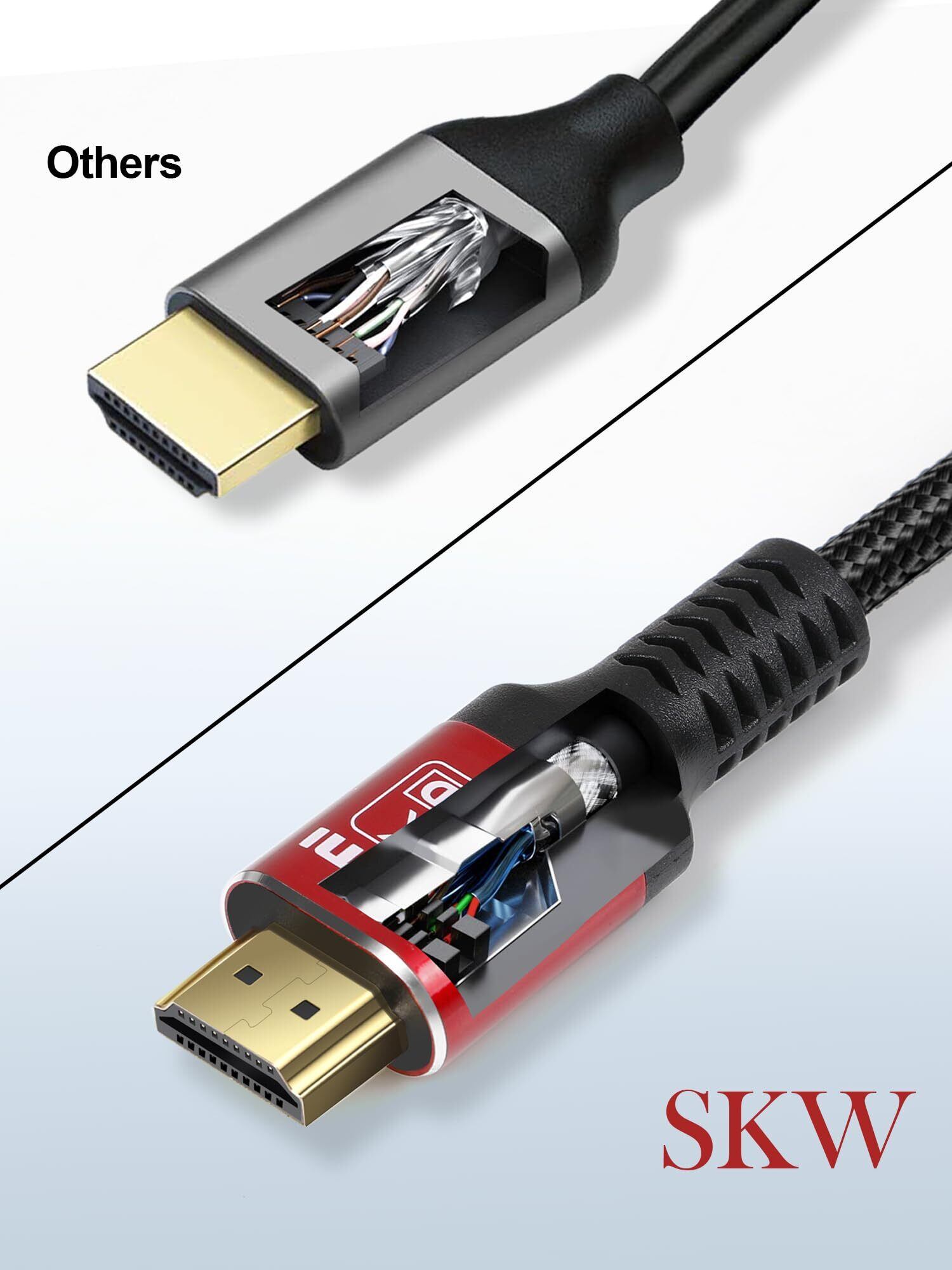 【超高速映像を実現するSKW HDMIケーブル!】SKWのHDMIケーブルは、最大48Gbpsのデータ転送速度を誇り、8K@60Hz、4K@120Hz、2K@144Hzに対応しています。これにより、高解像度の映像をスムーズに楽しむことができ、ゲーミングや映画鑑賞に最適です!