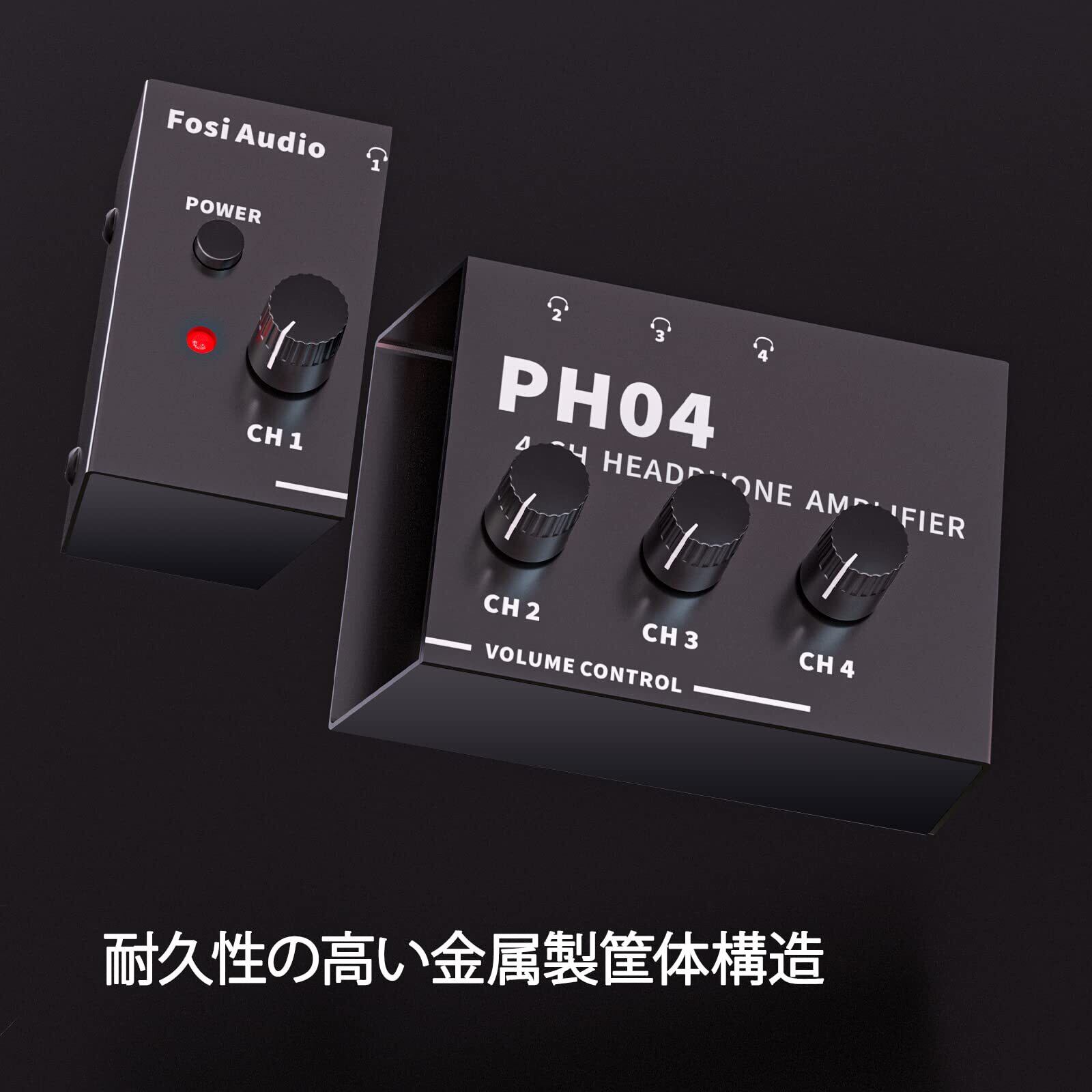 Fosi Audio PH04 4チャンネル ヘッドホンアンプ ステレオオーディオアンプ 金属製 超コンパクト ポータブル ヘッドフォンスプリッター 3.5mmメスAUX分配 黒色 スタジオ/ステージ適用(電源付き)