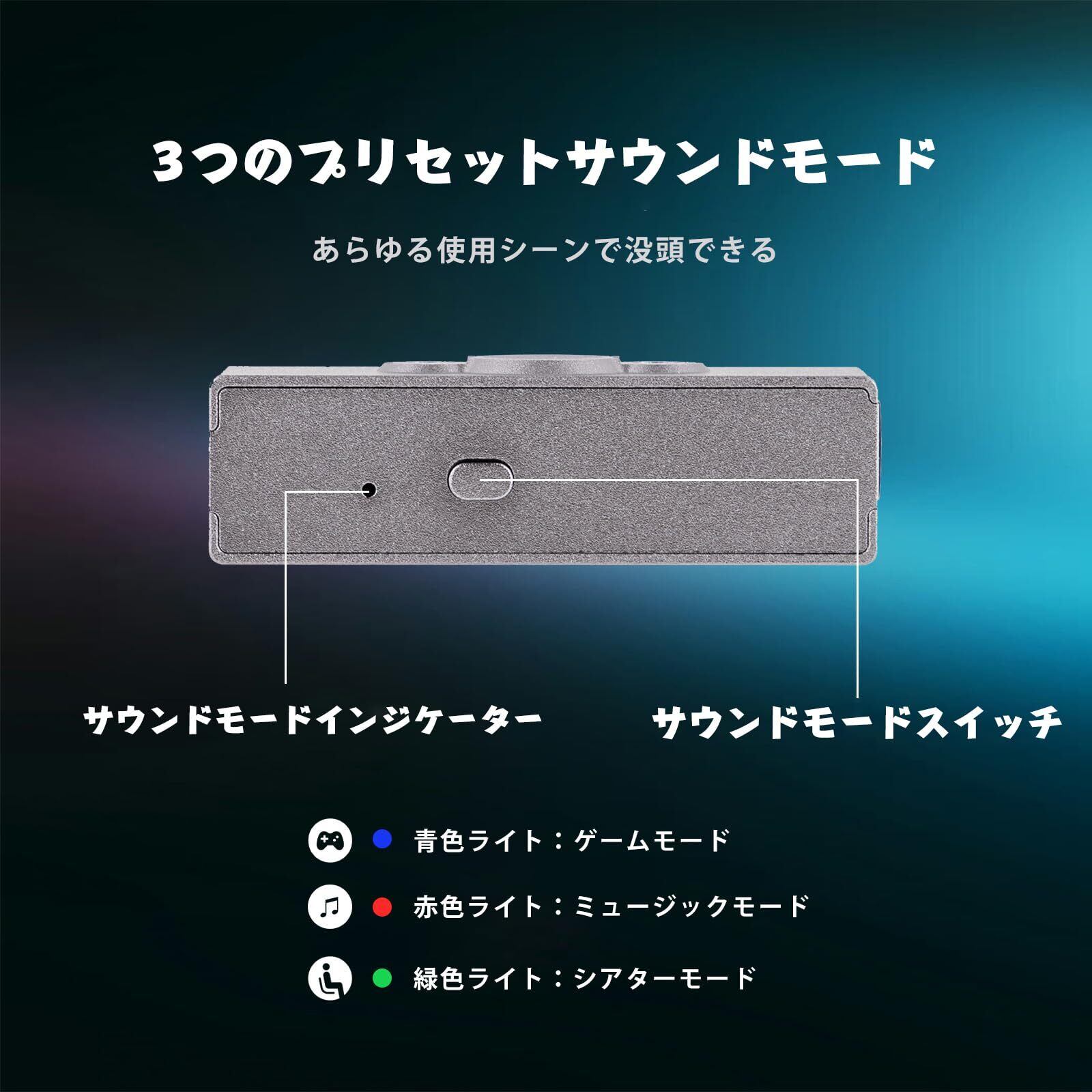 3つのプリセットサウンドモードとライティングエフェクト:Allegro Proには、ゲームモード、ムービーモード、ミュージックモードの3つのプリセットサウンドモードが搭載されています。各モードには独自のライティングエフェクトが付属しており、さまざまな使用シーンで没入感と体験を向上させます。RGBライティングエフェクト: 各サウンドモードに対応するライティングエフェクトを搭載。視覚的にも楽しめるデザインで、オーディオパフォーマンスを引き立てます