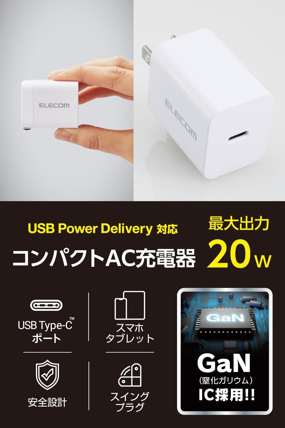 【新着商品】エレコム 充電器 Type-C USB-C 20W USB PD対応 1ポート PSE認証品 GaN採用 折りたたみ式プラグ ホワイト 【 iPhone 16 15 等対応】 EC-AC6820WH