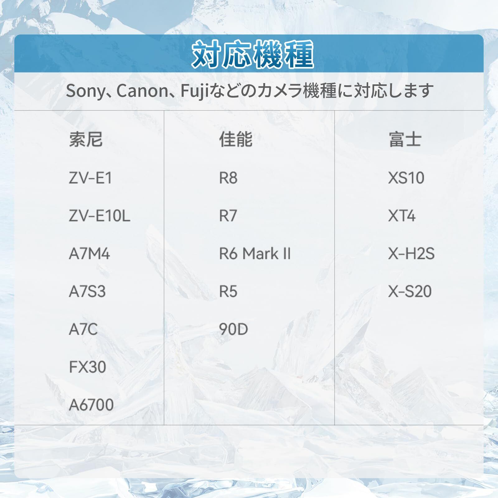 【対応機種&メーカー】ソニー ZV-E1 / ZV-E10L / a7 IV / a7S III / A7C / FX30 / A6700、キヤノン R8 / R7 / R6 Mark II / R5 / 90D、フジフイルム XS10 / XT4 / X-H2S / X-S20 などのカメラと互換性があります。の商品は12ヶ月品質があります、初期不良や使用中の自然故障等の場合交換のサービスを提供致いたします。