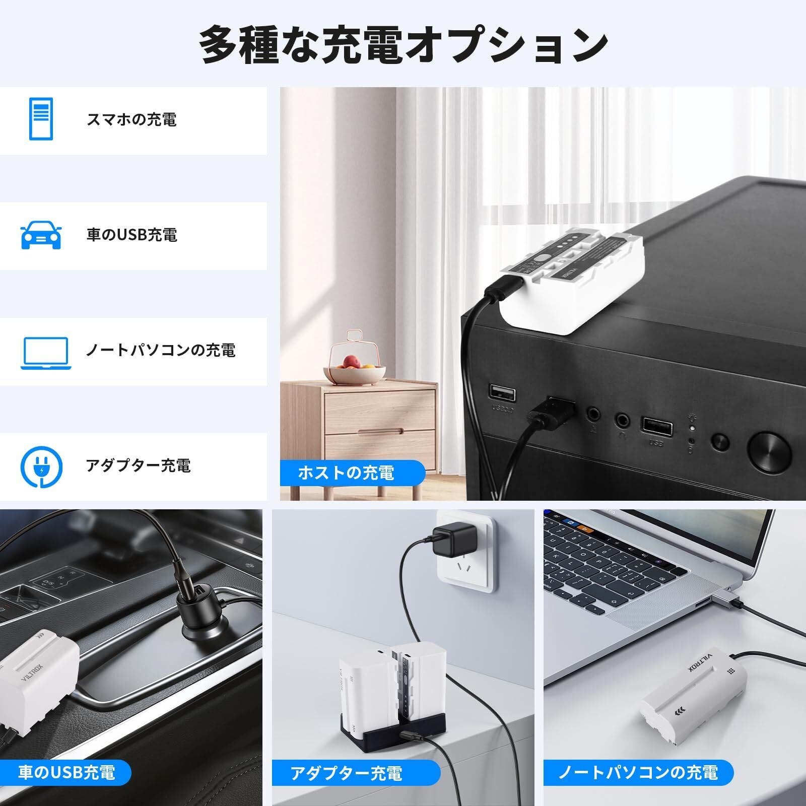 【汎用性が高い】:NP-F970バッテリー専用の充電器(付属あり)は充電できます、USBタイプCポートが装備され、バッテリー単体で充電できますので、大変便利に使えます。