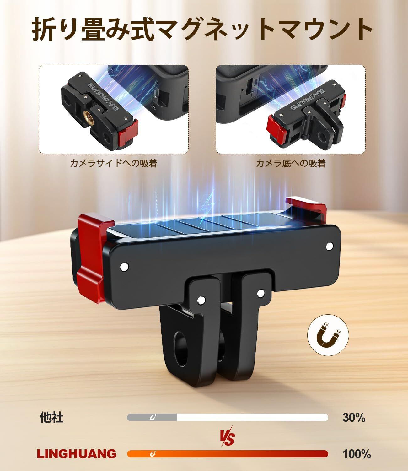 ■【高強度の磁石でしっかり固定!】このアクセサリーには、強力なマグネットが使用されており、安定した固定力を提供します。特にアクション撮影中でもカメラの位置が崩れにくく、安心して使用できます。