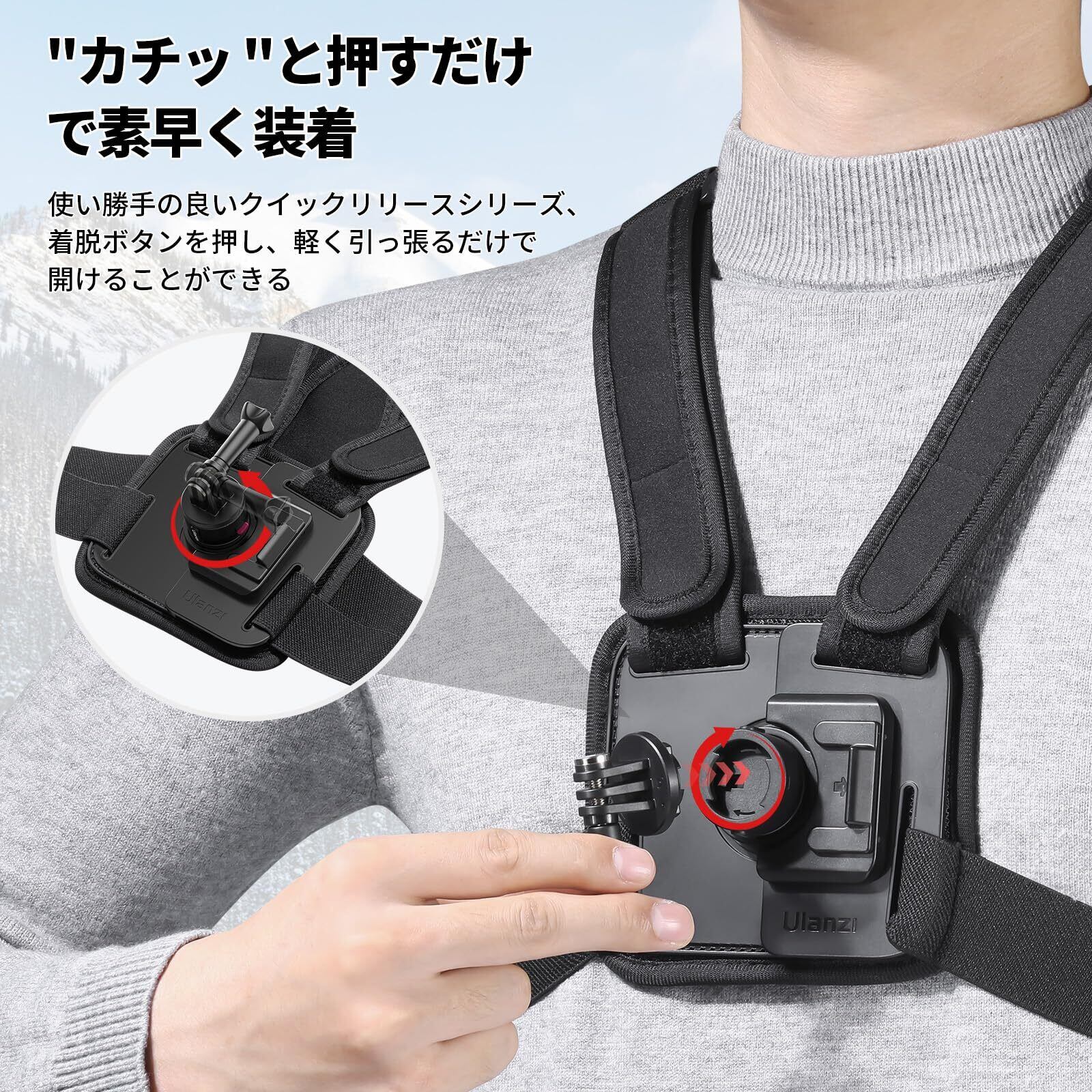 Ulanzi チェストハーネス GoPro用 アクセサリー スマホ チェストマウント クイックリリース スマホホルダー付き ウェアラブルカメラ ベルト クイックリリース ショルダー 調節可能なチェストストラップ POV動画撮影 旅行 アウトドア 山登り hero13/12/11/10/9用 Insta360 OneR/X3/X4用 DJIに対応 Go-Quick II クイックリリースマウント