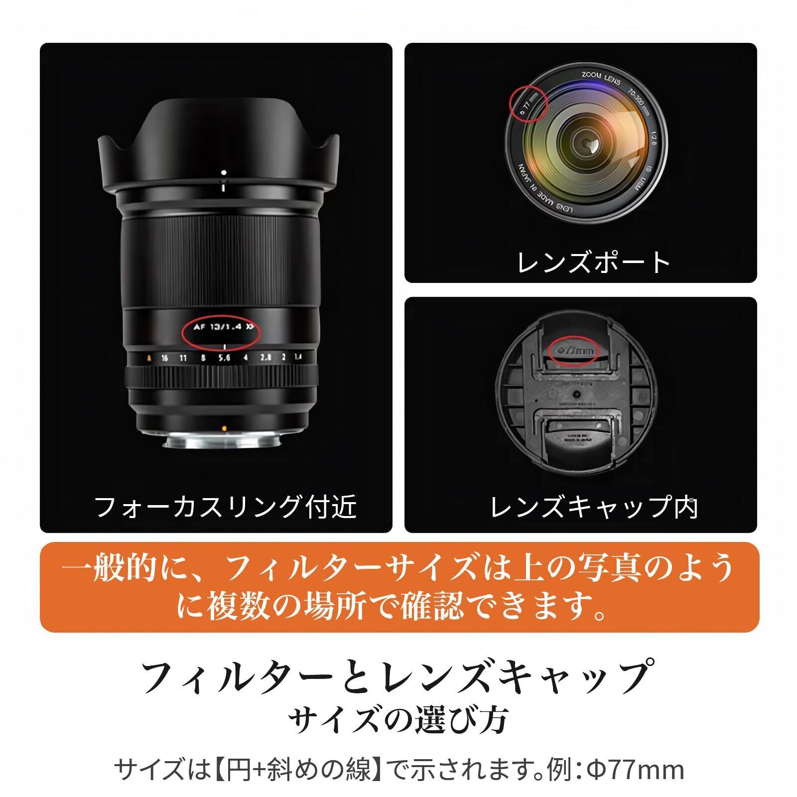 ■対応サイズ: 37mm/40.5mm/43mm/46mm/49mm/52mm/55mm/58mm/62mm/67mm/72mm/77mm/82mm