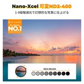 【進化版ND2~ND400減光&高透過率】本フィルターは色に影響を与えず、光量を減らしてシャッタースピードを調節することが出来る。オレンジのハンドルでND濃度を快適に調整可能。レンズ本来の多彩な表現をしながら、強い光でも低速シャッターで、雲海や滝の水の流れを滑らかにすること、ライトの光跡を残すことを表現出来。NANO-X II高画質対応出来のHD版レンズフィルター。高品質な光学ガラスは、99.6%高透過率を実現し、レンズ本来の描写力を最大限に活かす。レンズフレアとゴーストを著しく低滅し、反射を抑え、明るく多彩な写真を自由に撮れる。