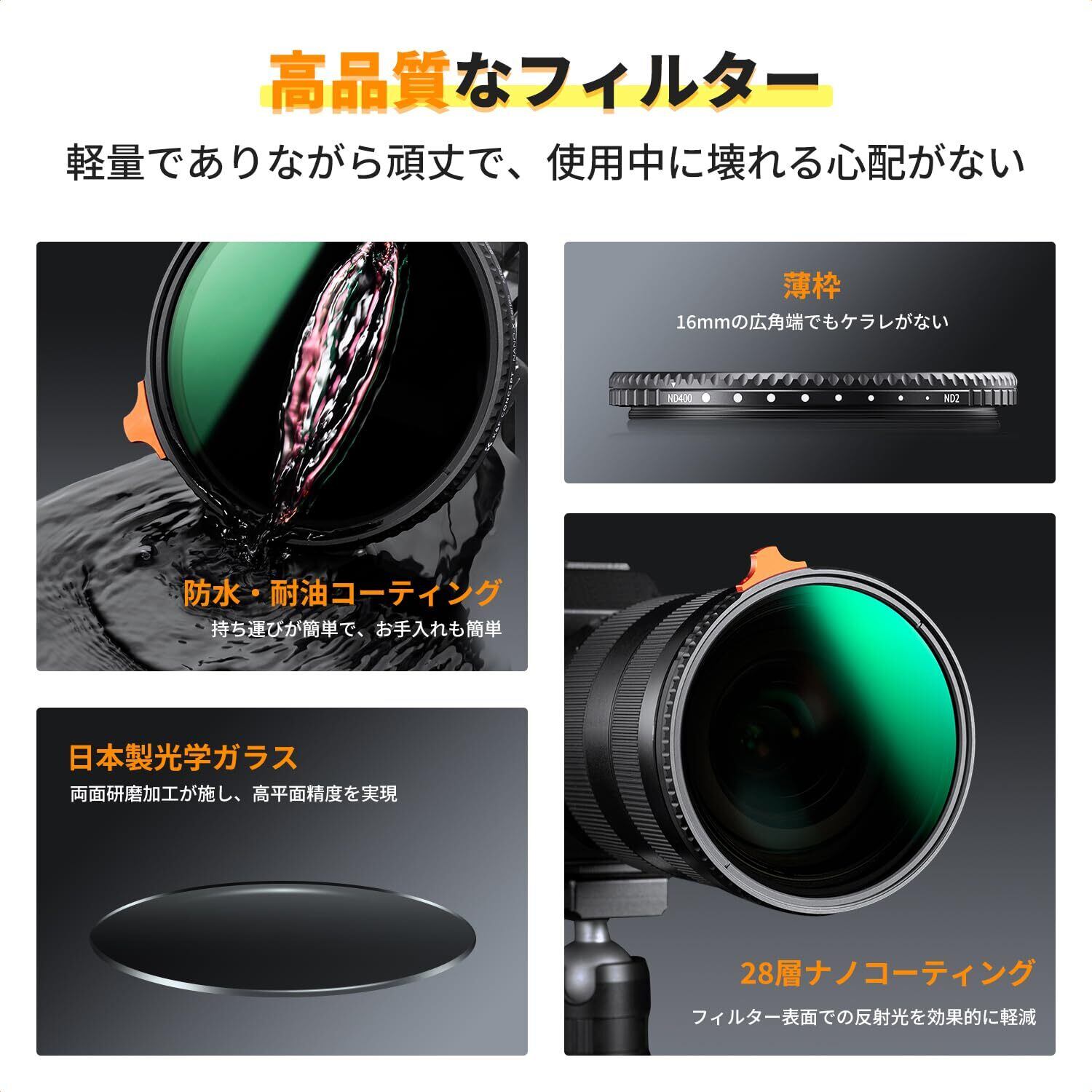K&F CONCEPT 82mm 可変NDフィルター ND2-ND400 日本製AGC光学ガラス HD超解像力 低い反射率 360°無段階調節可能 28層ナノコーティング 撥水防汚キズ防止 薄型 ビデオ/風景撮影のレンズフィルター【メーカー直営店】