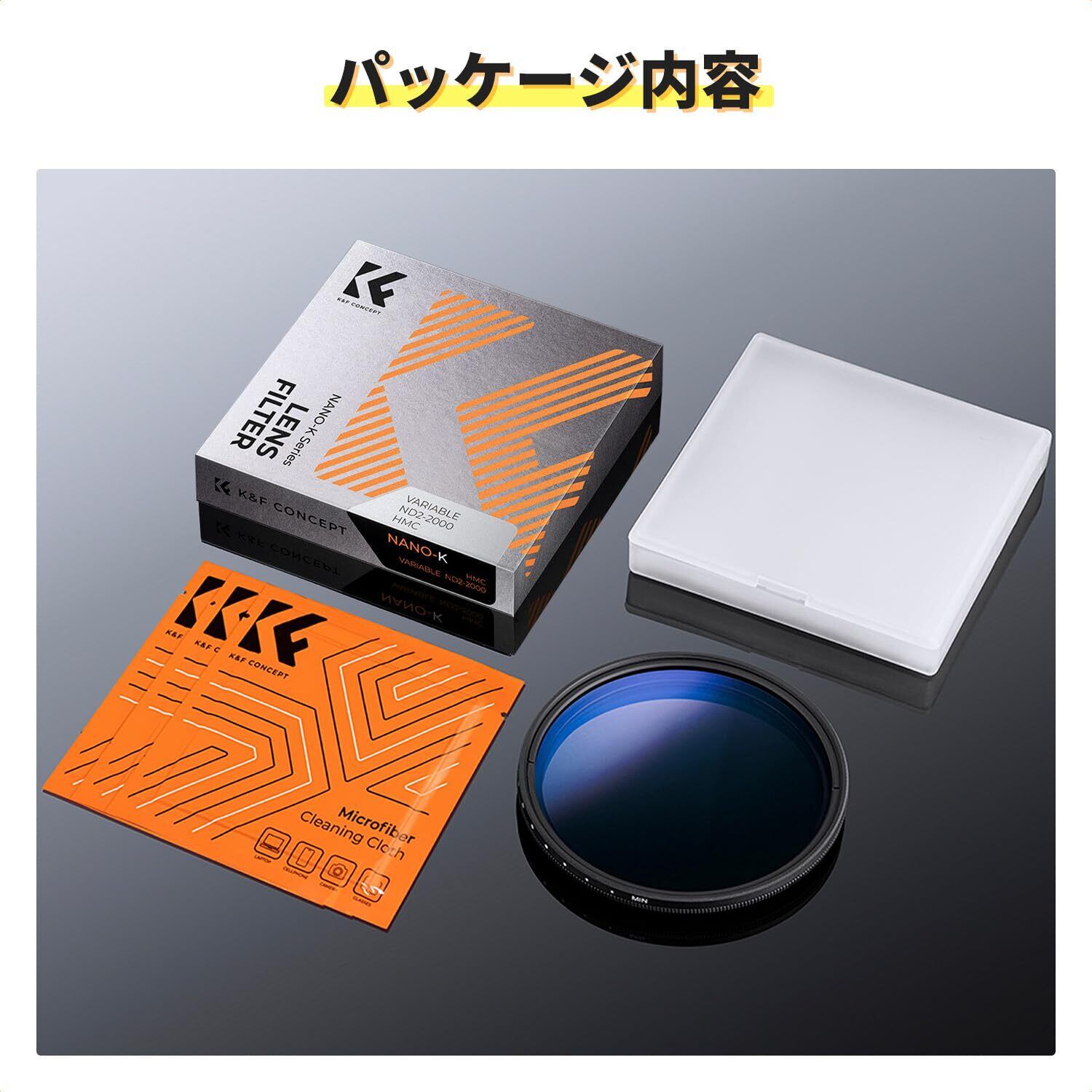 【Nano-Klear 可変NDフィルター】K&F CONCEPT ND2-2000の可変NDフィルターはND2からND2000までの11段階の光量が調整可能で、減光フィルターの濃度はさまざまな光環境に適応するために必要に応じていつでも調整できます。(ご注意:Nano-Klear フィルターは非HDレンズなので、望遠撮影には使用できません。キャップは可変NDフィルター径より1サイズ大きくなります。本品にはフードは取り付けられません。)※外装の新旧が混在しますが、中身は同一です。