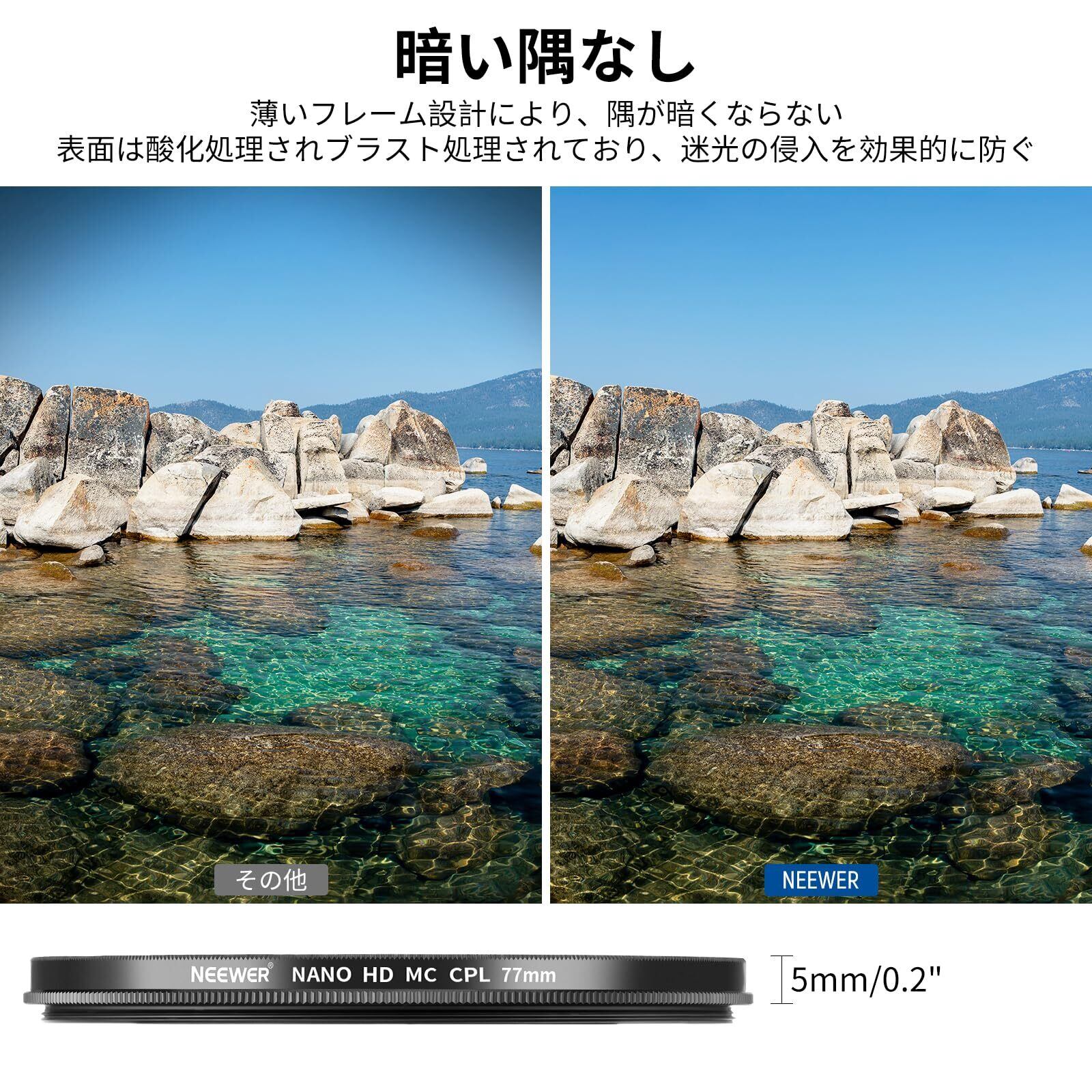 NEEWER 77mm 偏光フィルター 24層多層耐性ナノコーティング MC CPL 円偏光フィルター HD光学ガラス 超薄型レンズフィルター 反射除去/コントラスト強調/グレア低減