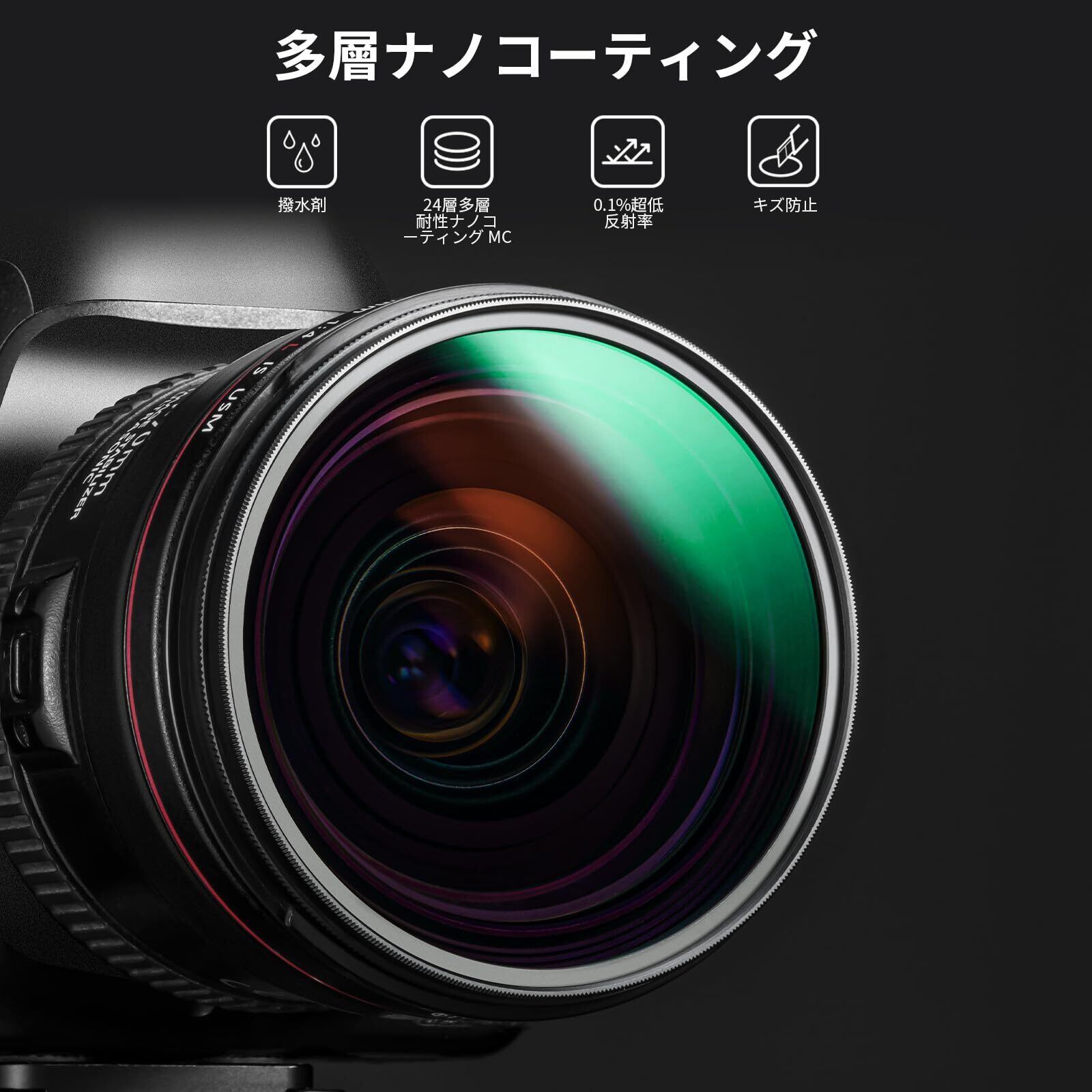 ■【耐久性に優れた24層ナノコーティング!】フィルター表面には、抗反射機能を兼ね備えた24層のナノコーティングが施されており、反射やフレアを最小限に抑えます。これにより、高画質な映像と耐久性を兼ね備え、長期間使用可能です。