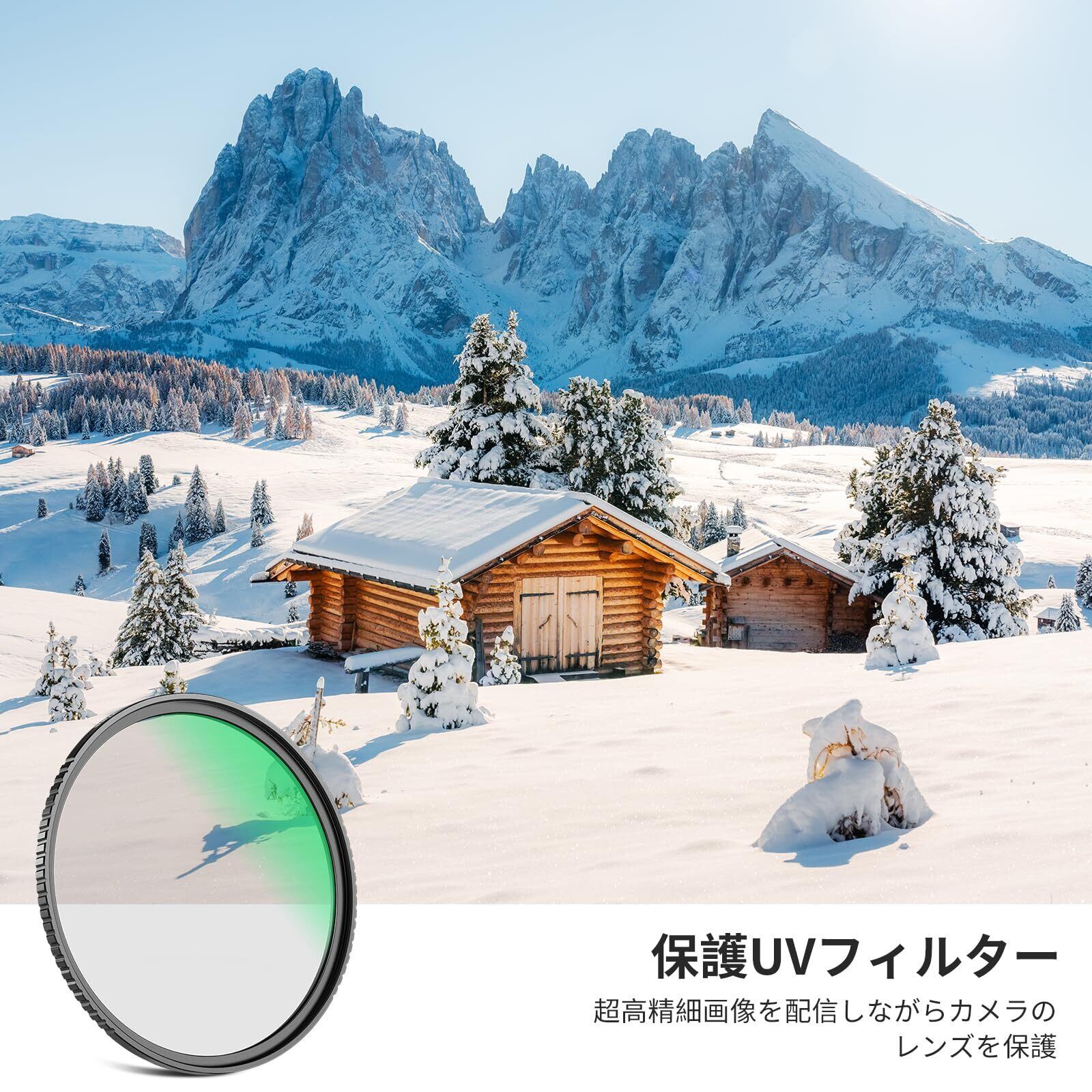 【UV保護フィルター】レンズの前面要素を物理的に保護するバリアとして機能し、ほこり、傷、衝撃による潜在的な損傷からレンズを守ります。