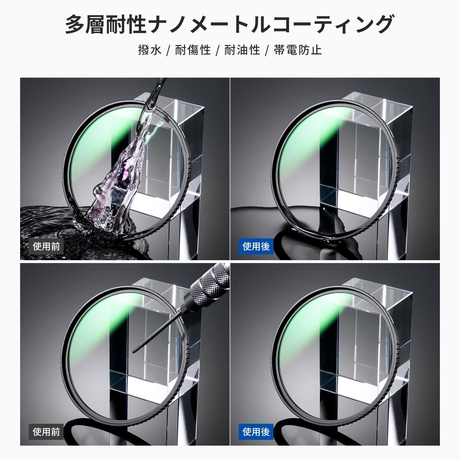 ■【優れた耐久性を誇る設計!】このフィルターはHD光学ガラスを使用しており、透明度の高い映像を実現します。防水・耐傷性を備えているため、アウトドアや様々な条件下でも安心して使用でき、大切なレンズを効果的に保護します。