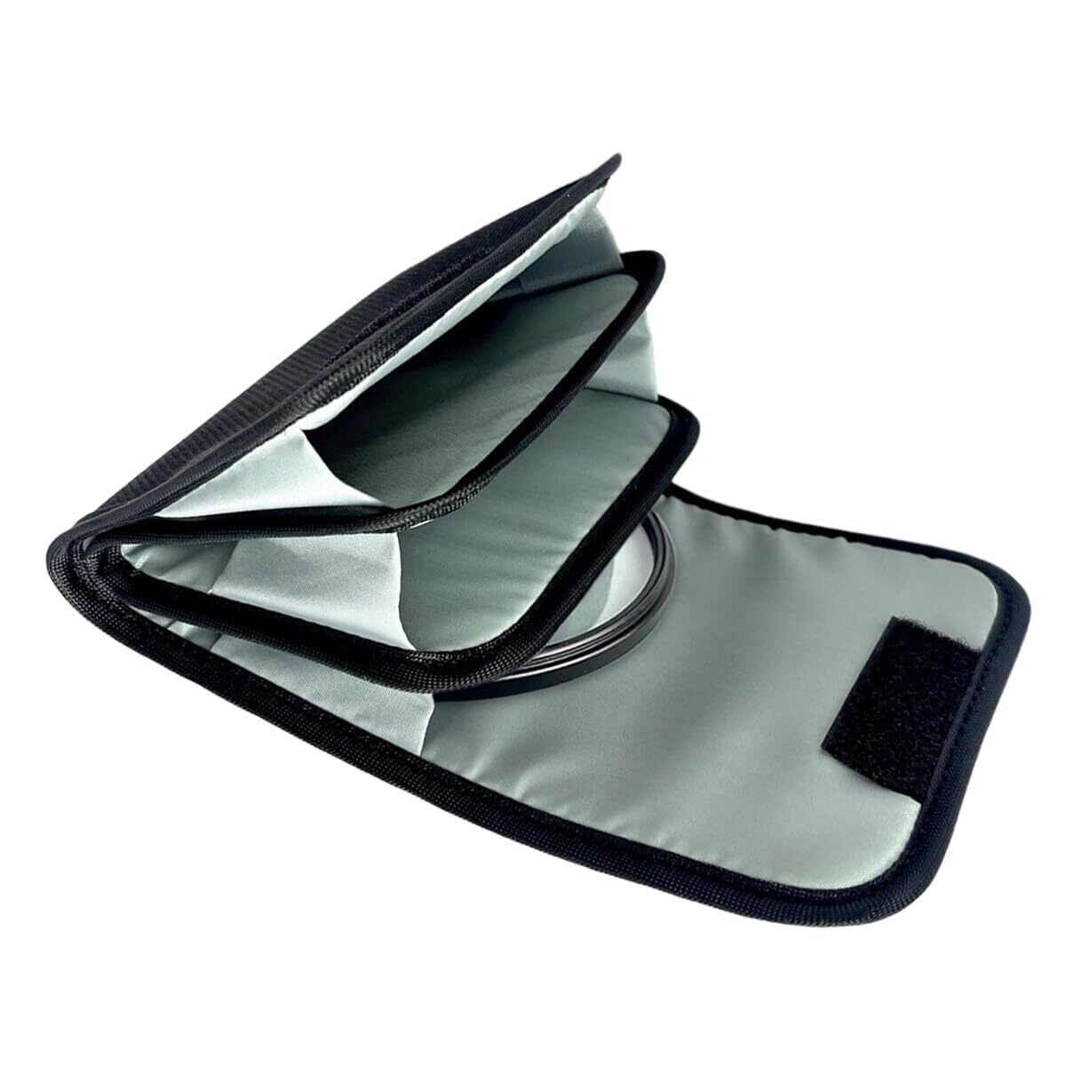 3ポケットカメラレンズバッグ 、フィルターをしっかりと固定し、移動中の落下を防ぐ閉じ具付き。フィルターをそれぞれの裏地ポケットに入れて、ほこりや水からフィルターを効果的に保護できます。