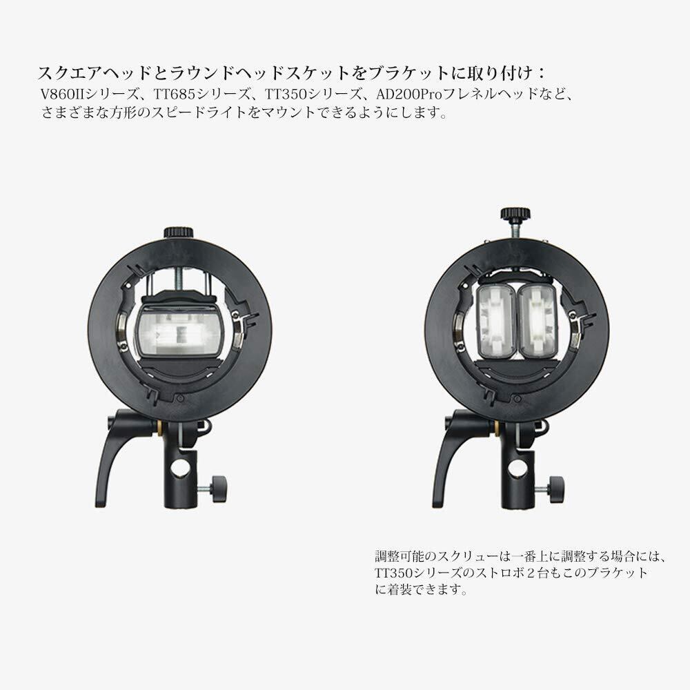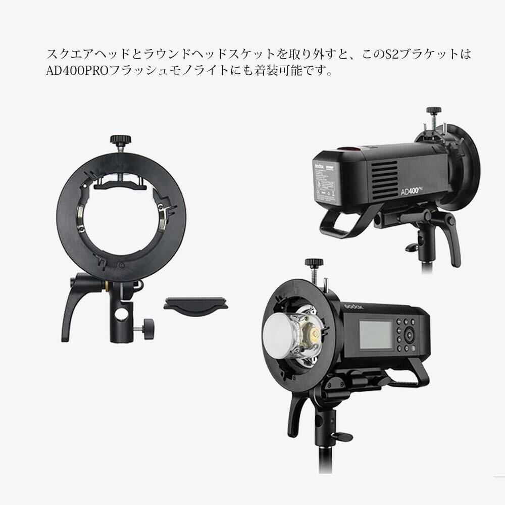 Godox S2アップグレードS型ブラケット ボーエンズマウント 取り外す可能のガスケット godox AD200 AD200pro AD300pro AD400proやラウンドヘッドV1ストロボとV860II、V850II、TT685、TT600、TT350などに着装可能 ソフトボックス リフレクター ビューティーディッシュなど対応