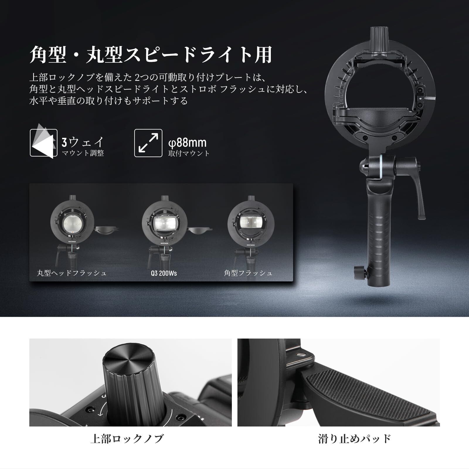 NEEWER S型ブラケットホルダー アンブレラマウント/滑り止めハンドル付き 角型/丸型フラッシュストロボ用 フラッシュブラケット コンパチブル Godox AD200Pro V1 NEEWER Z2 Z1 Z760 NW760 NW700 TT560 Q3 CRB2 Bowensマウント