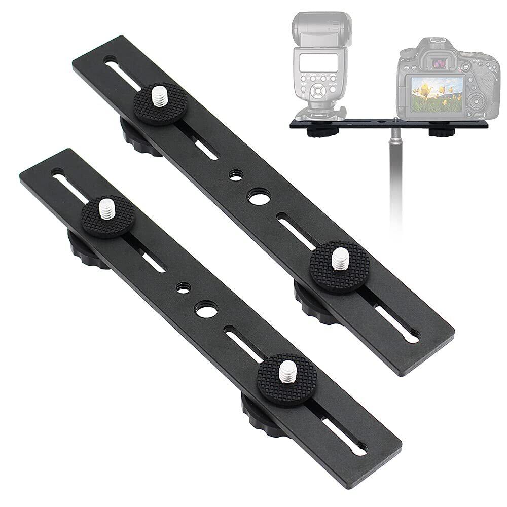 Zeetain 20cm デュアルフラッシュブラケット三脚マウント カメラスタンド ライトスタンド 外部フラッシュ クランプ カメラプレート ストレートブラケット カメラ台座 (2個入り)