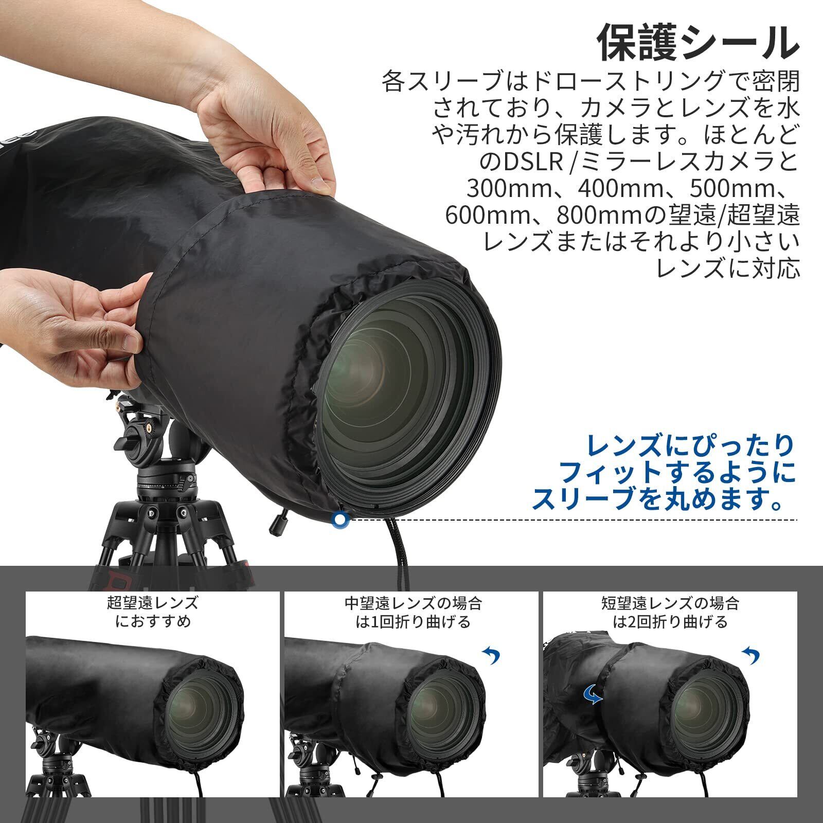NEEWER カメラレインカバー Lサイズ 丈夫なナイロン製レインコート DSLR ミラーレス Vlog カメラ & 300/400/500/600/800mmのレンズに対応 スリーブ ドローストリング 透明窓 PB004