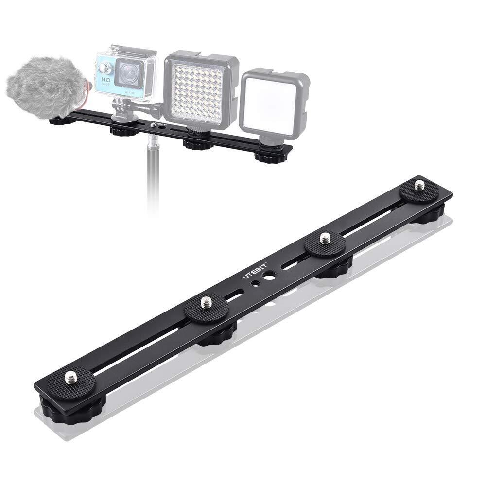 UTEBIT カメラ シューブラケット ホットシュー付き 30cm 雲台 プレート 四台取り付け可能 カメラ 4台 プレート アルミ合金製 1/4 ネジ穴 と 3/8" ネジ穴付き 延長 ビデオライト/ストロボに対応
