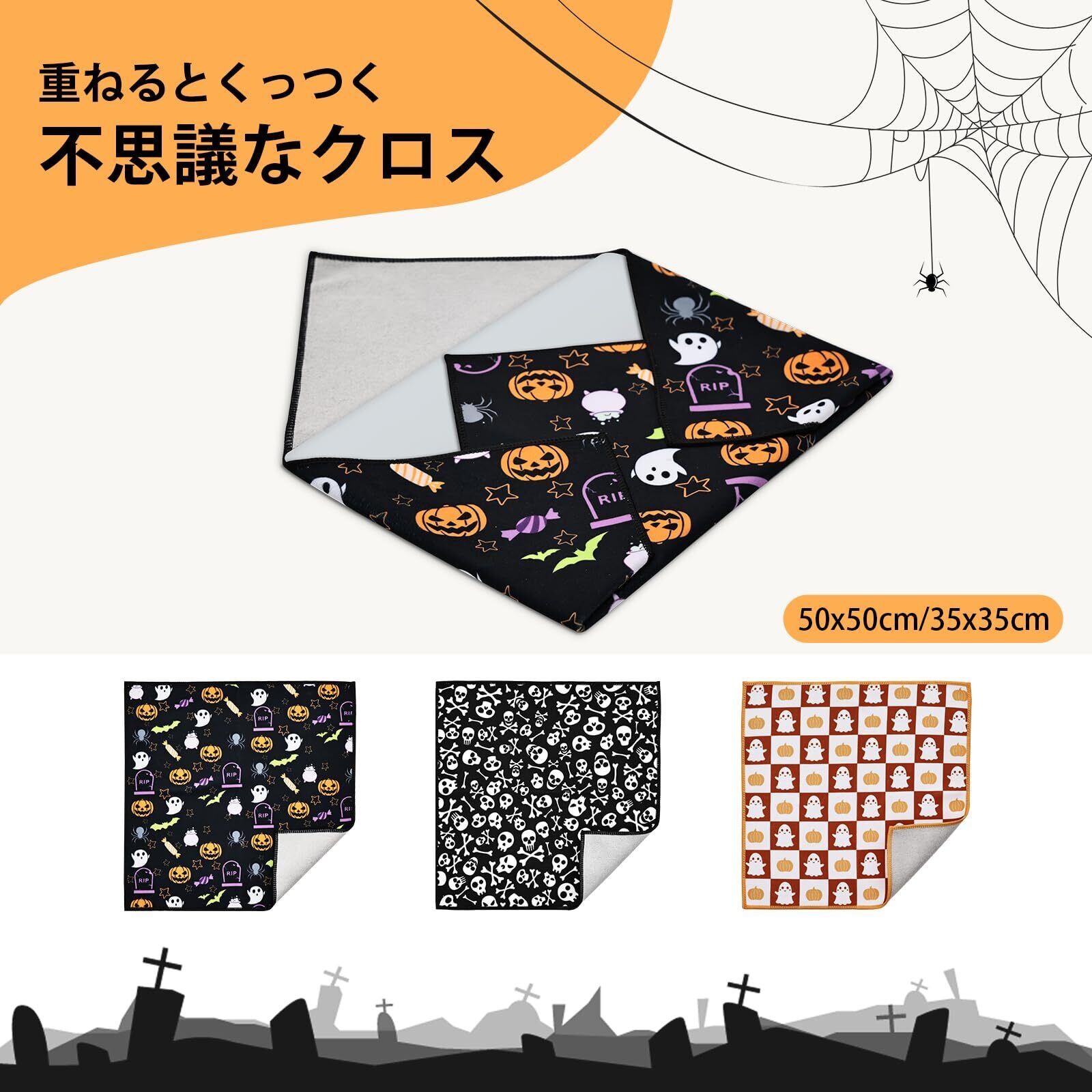 【ハロウィン雰囲気たっぷり】ハロウィンは日本では大活躍になっているので、ハロウィンを盛り上げる飾りとして存在感も抜群になっています。ハロウイン装飾品として, 幽霊 、髑髏、キャンディー、カボチャなど、ハロウィンの定番要素からインスピレーションを得ました。見た目がカラフルで、家やパーティーにハロウィンの雰囲気を与えます。この不思議なくっつきタオルは50*50cm 、35*35cmの2サイズがあります。これで飾ると、部屋を楽しい雰囲気へと変えてくれます。ハロウィンギフトは最高!!!