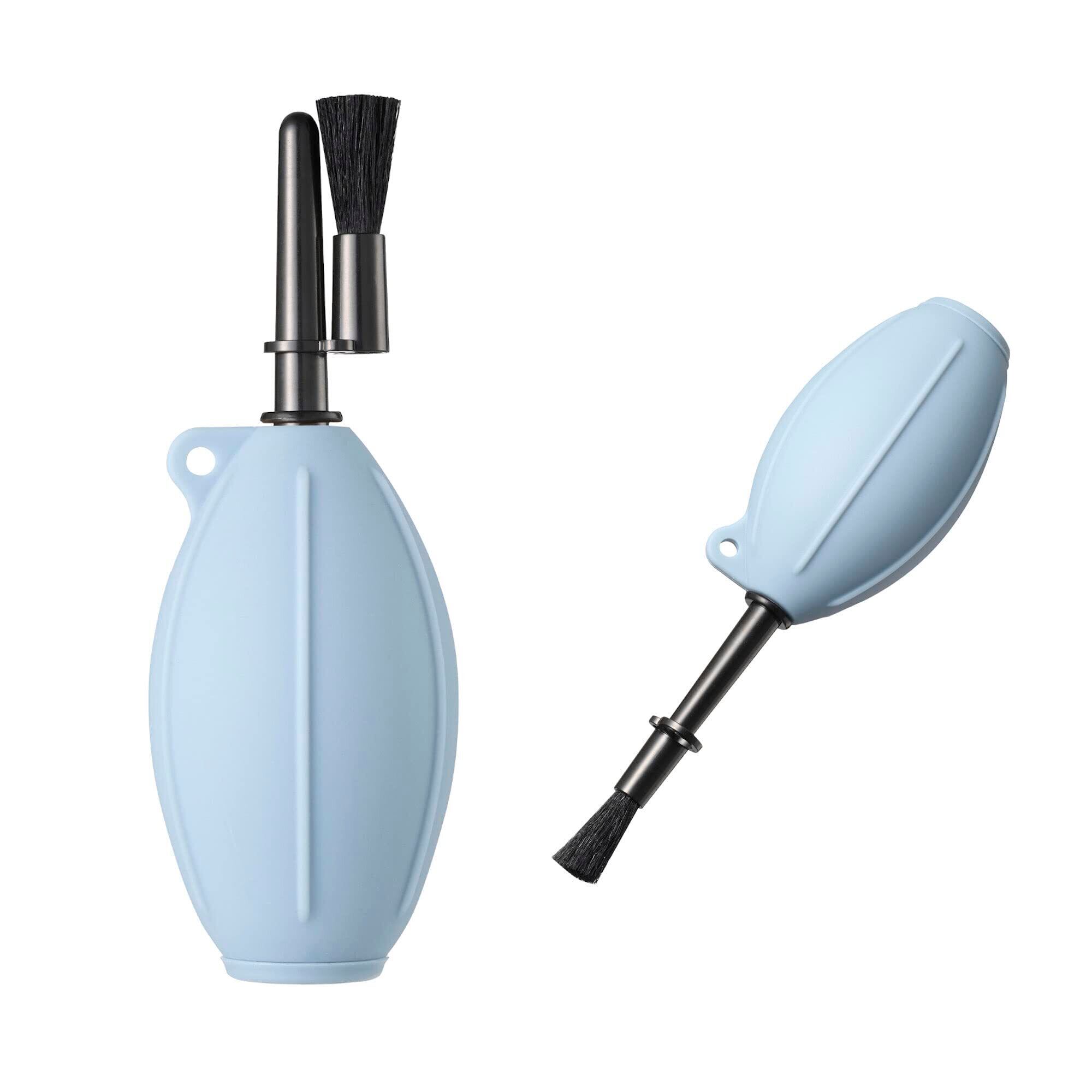 レンズやカメラ、OA機器などのクリーニングに適したシリコン製ブロアー。ノズルの先端にブラシを装着可能。