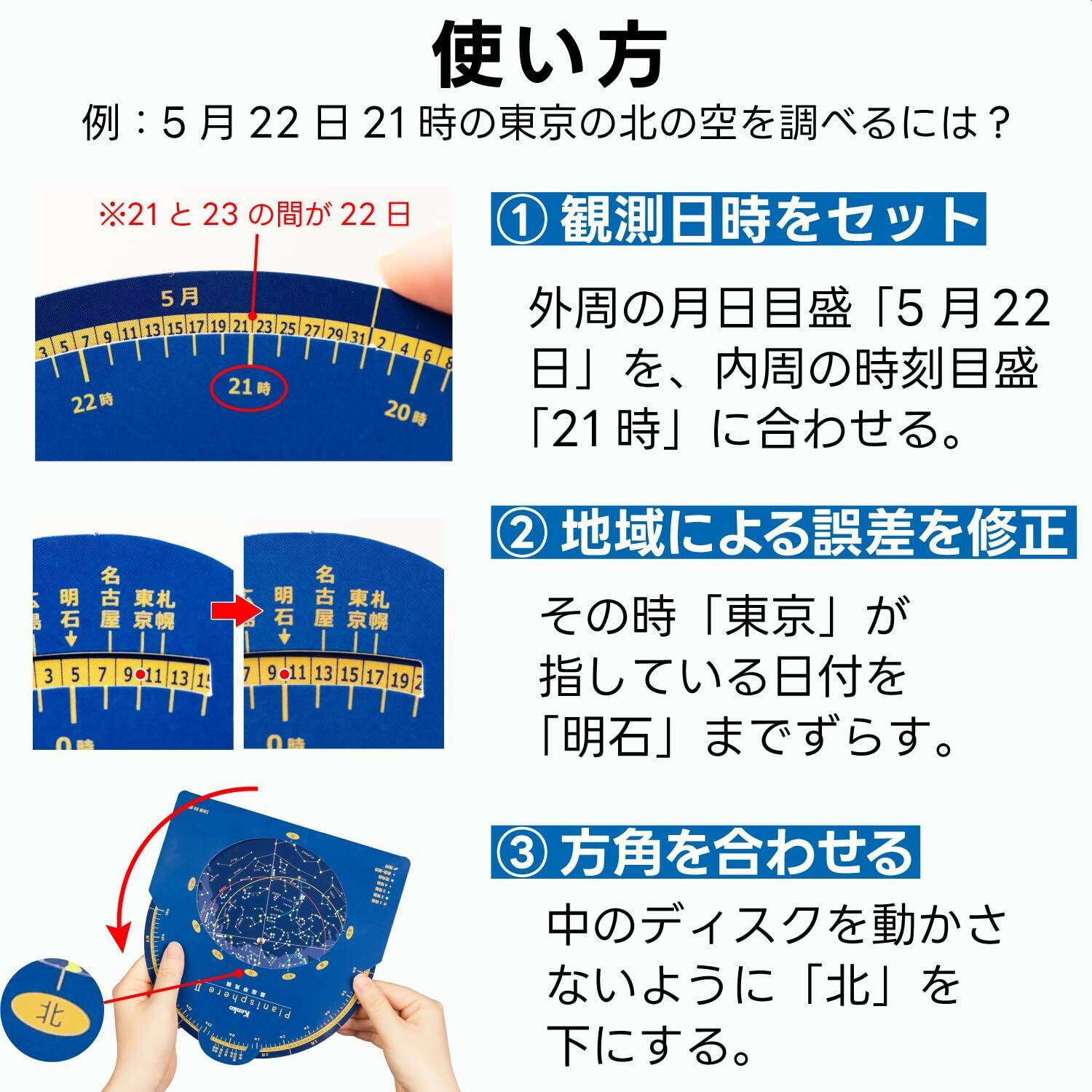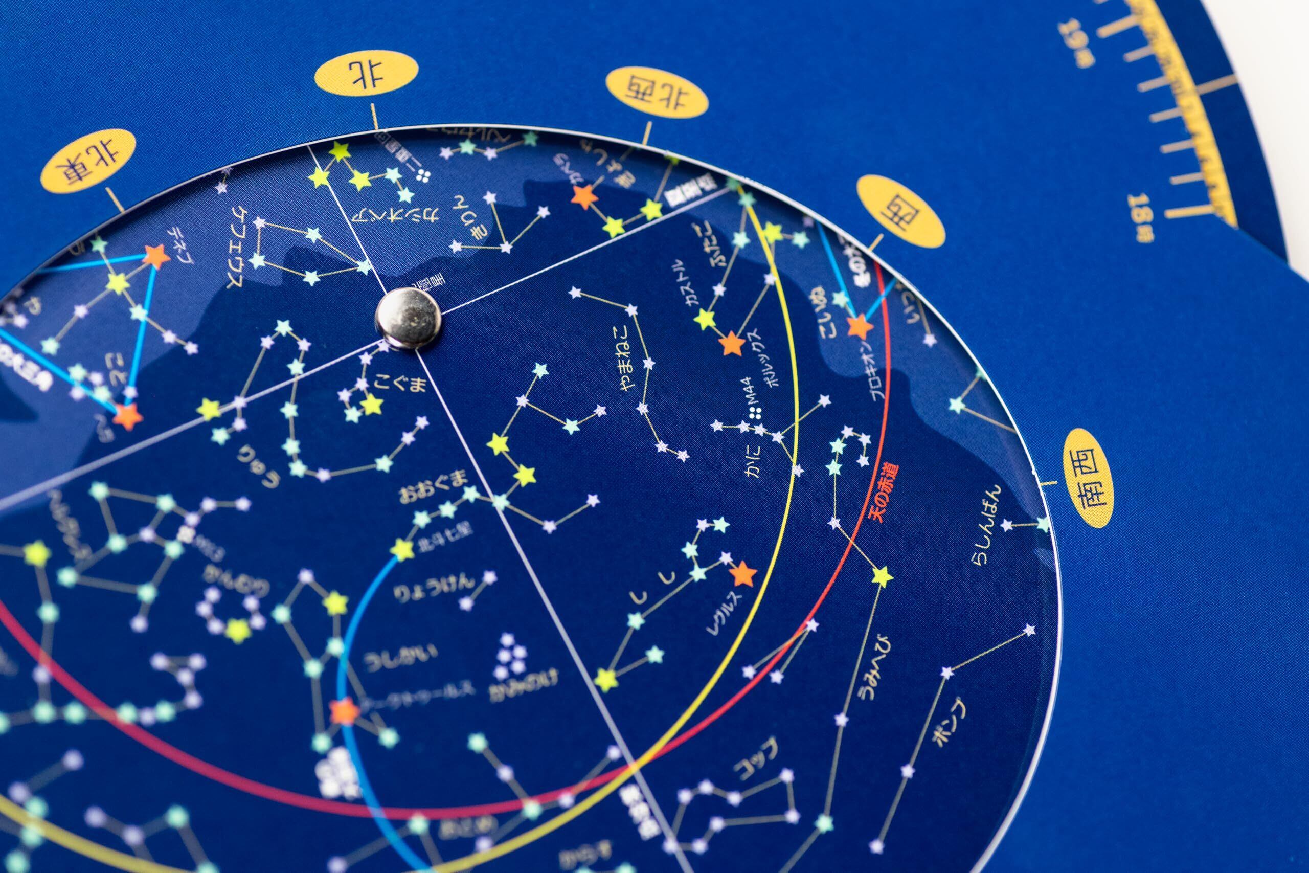 ■【視覚的にわかりやすいデザイン!】明るいグラフィックにより、星座だけでなく星の位置や月の位相も一目で確認できます。使い方もシンプルで、手軽に星空散策を楽しめます。アウトドアや天体観測会に最適です。