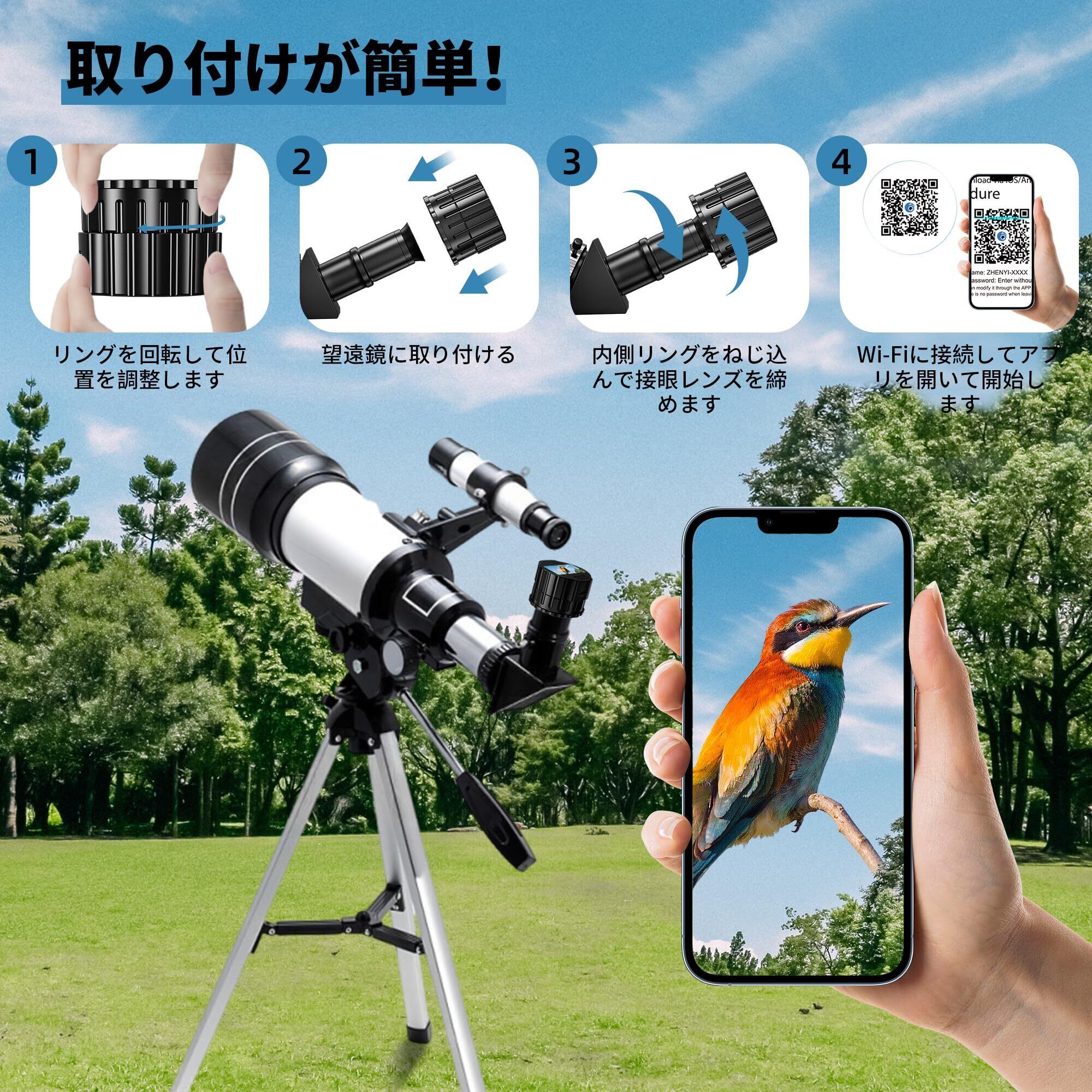 ■特徴: このWiFi望遠鏡カメラで、観測の楽しさを新たな次元へ進めましょう!美しい夜空や新たな発見をあなたの手の中で体感してみてください!