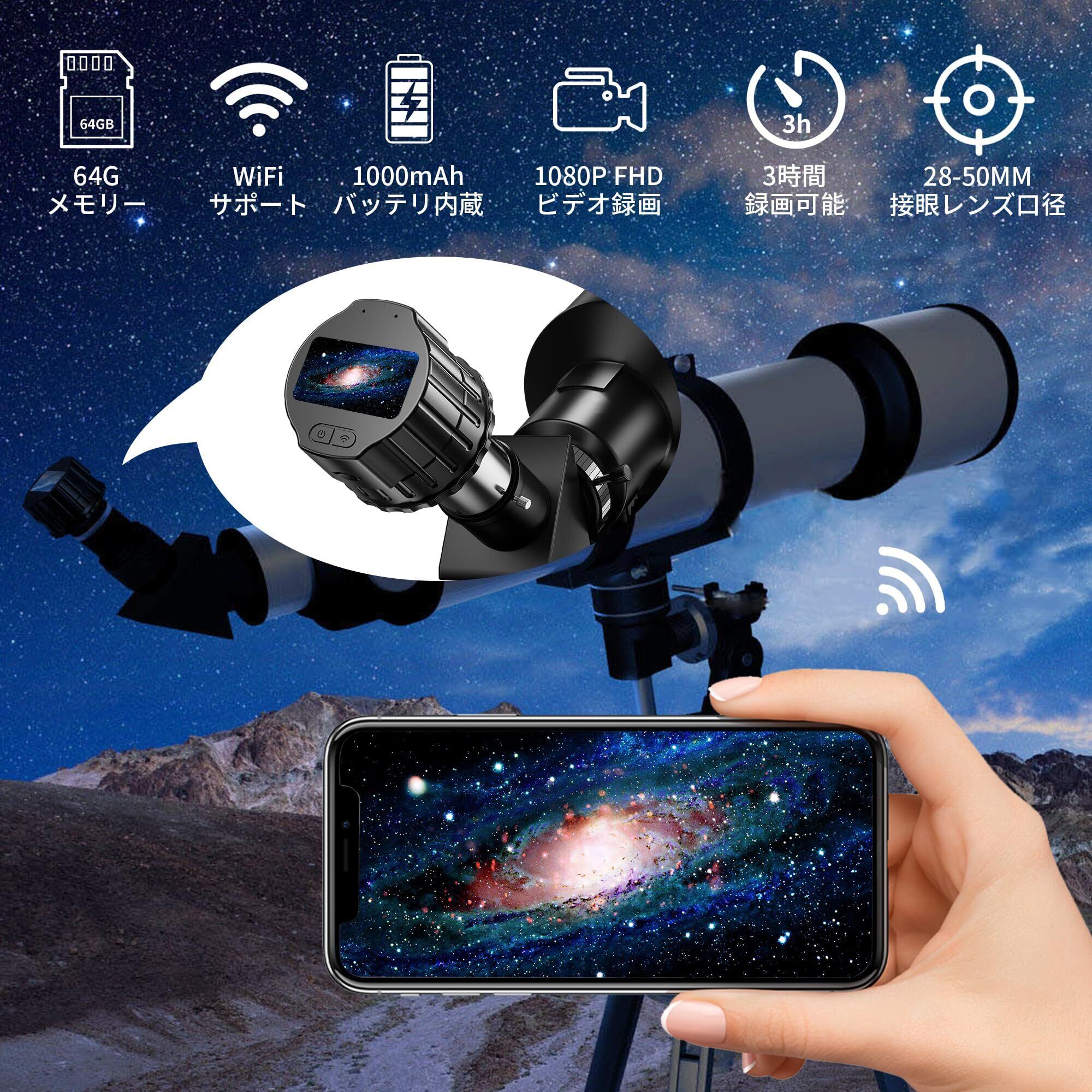 64GB TFカード付き2025年10月新登場WiFi望遠鏡カメラ 4MPデジタル画像 3時間連続録画 望遠鏡用アクセサリー ワイヤレス電子接眼レンズ 2Kビデオ録画 28-50mmフィールドスコープ用アクセサリー1920x1080P電子接眼レンズ スマホ接続可 アイピースアダプター 天体望遠鏡アクセサリー 望遠鏡顕微鏡アクセサリー 単眼鏡/双眼鏡/顕微鏡対応 天体観測用 野鳥観察用 初心者に向け