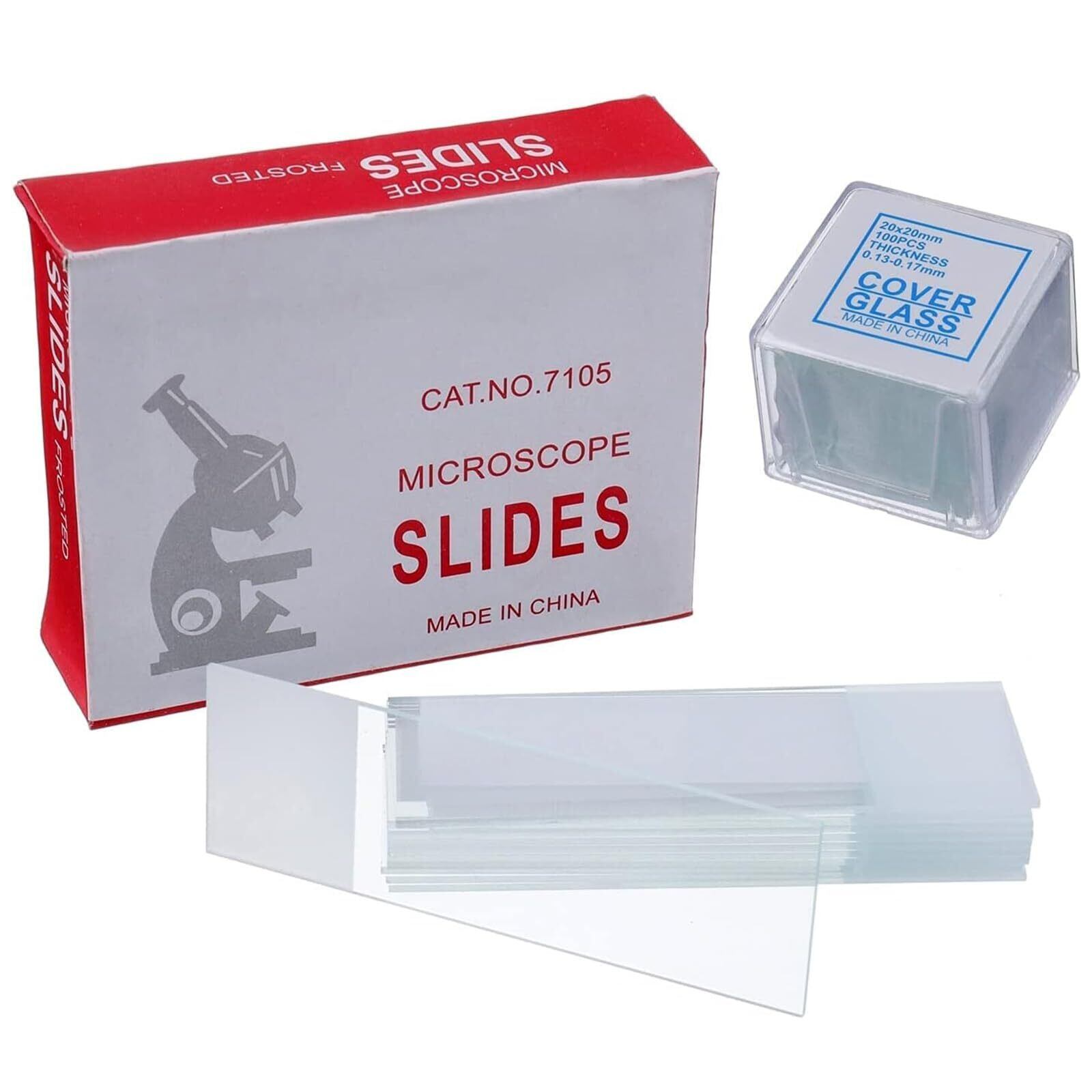 DFsucces 顕微鏡 カバーガラス フロストスライド カバースリップ 透明 平滑面 100枚 スライド50枚 カバースリップ 実験 観察 顕微鏡 科学 理科