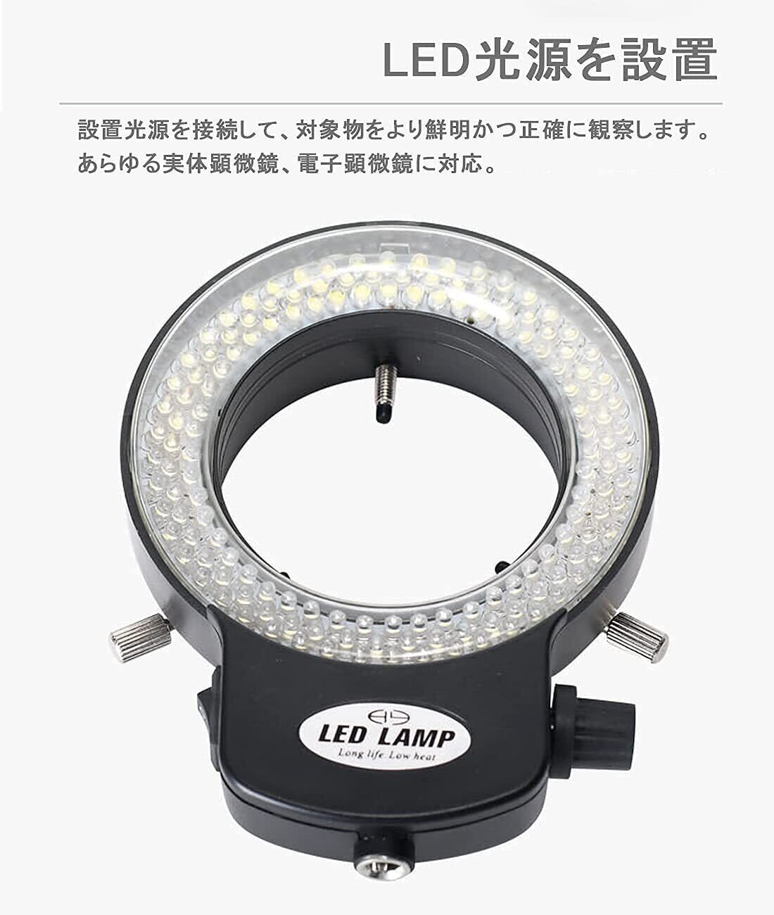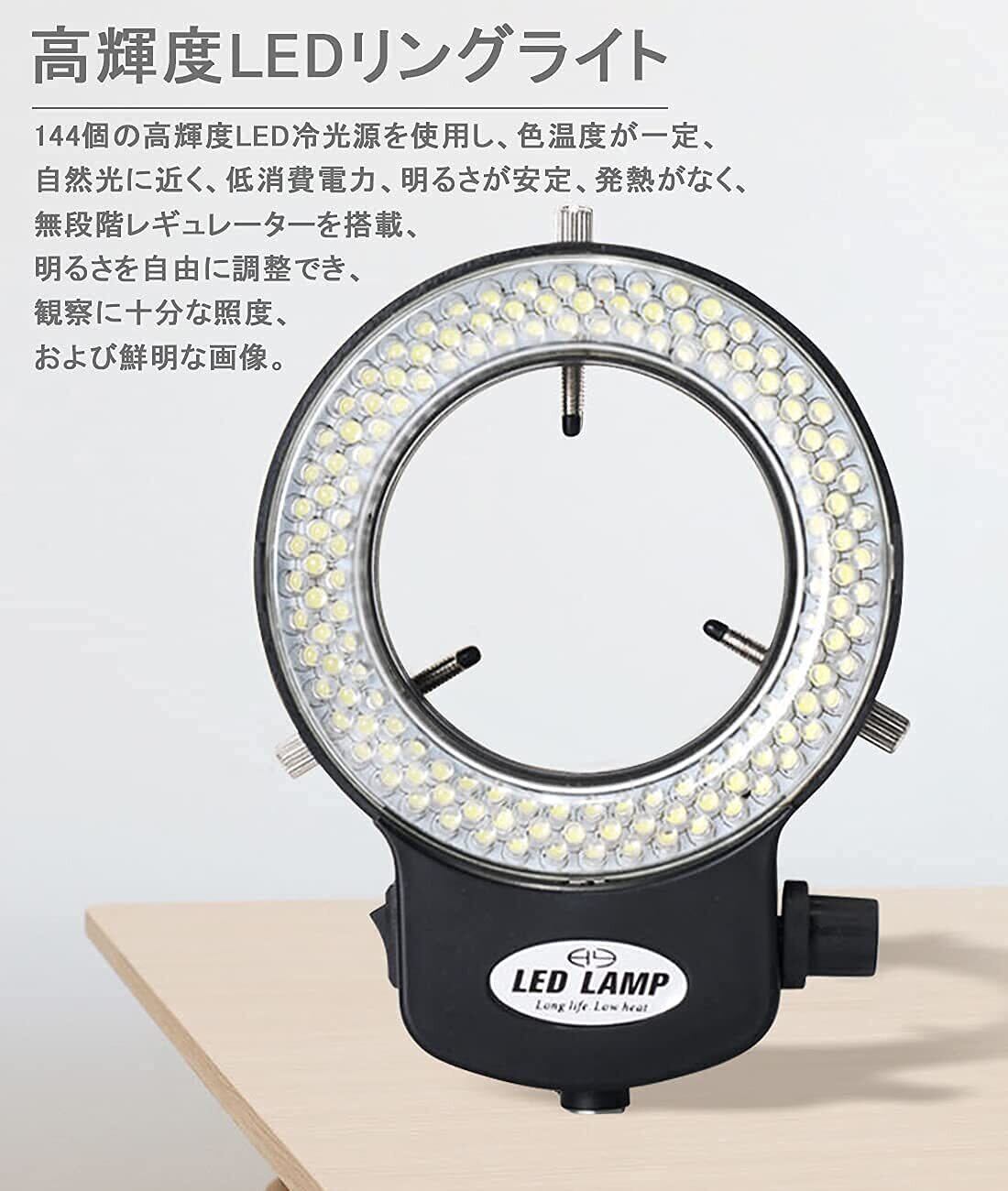 【適応場合】144LEDリングライトは、特に立体顕微鏡用に設計されており、さまざまな種類の顕微鏡やカメラに最適です。暗い場所や場所での視聴を捜しながらカメラの焦点を合わせるための光源としても使用できます。
