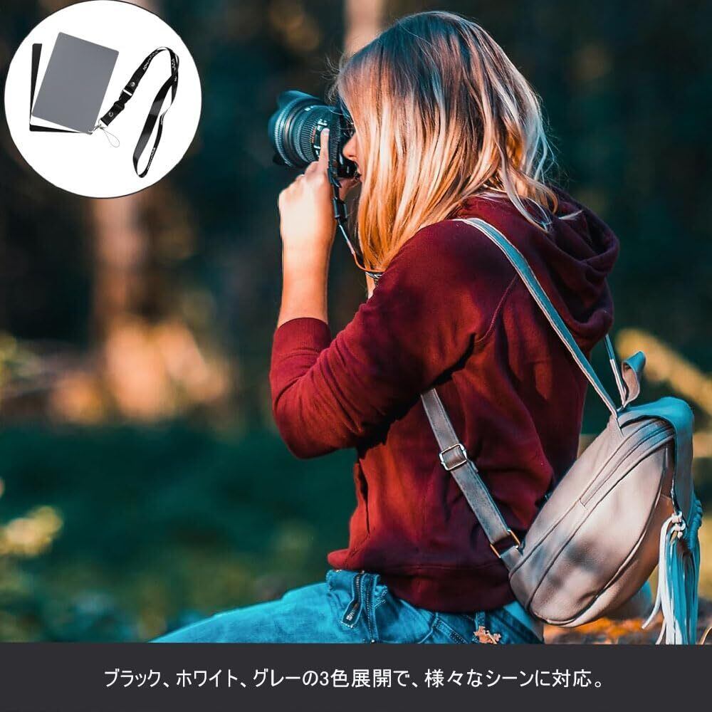 【 軽量持ち運び】18*13cmの小さなサイズ、ストラップ付き設計で、持ち運びが便利です。精巧なデザインで、いつでもどこでもこのグレーカードセットで色温度を校正できます。