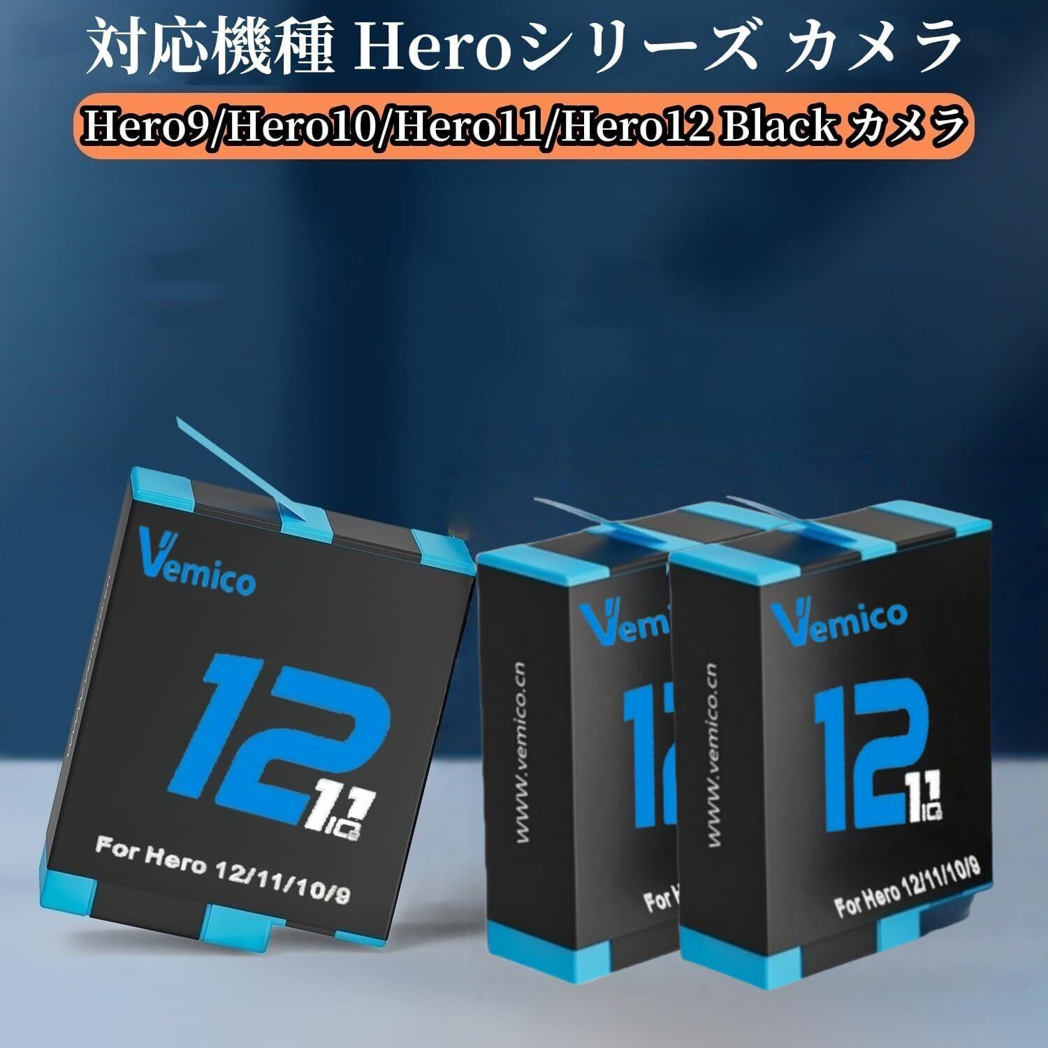 【数量限定】Vemico Hero 12バッテリー 急速充電器セット 3*1800mAh大容量電池 Hero 9/10/11/12ブラック用 3個セット