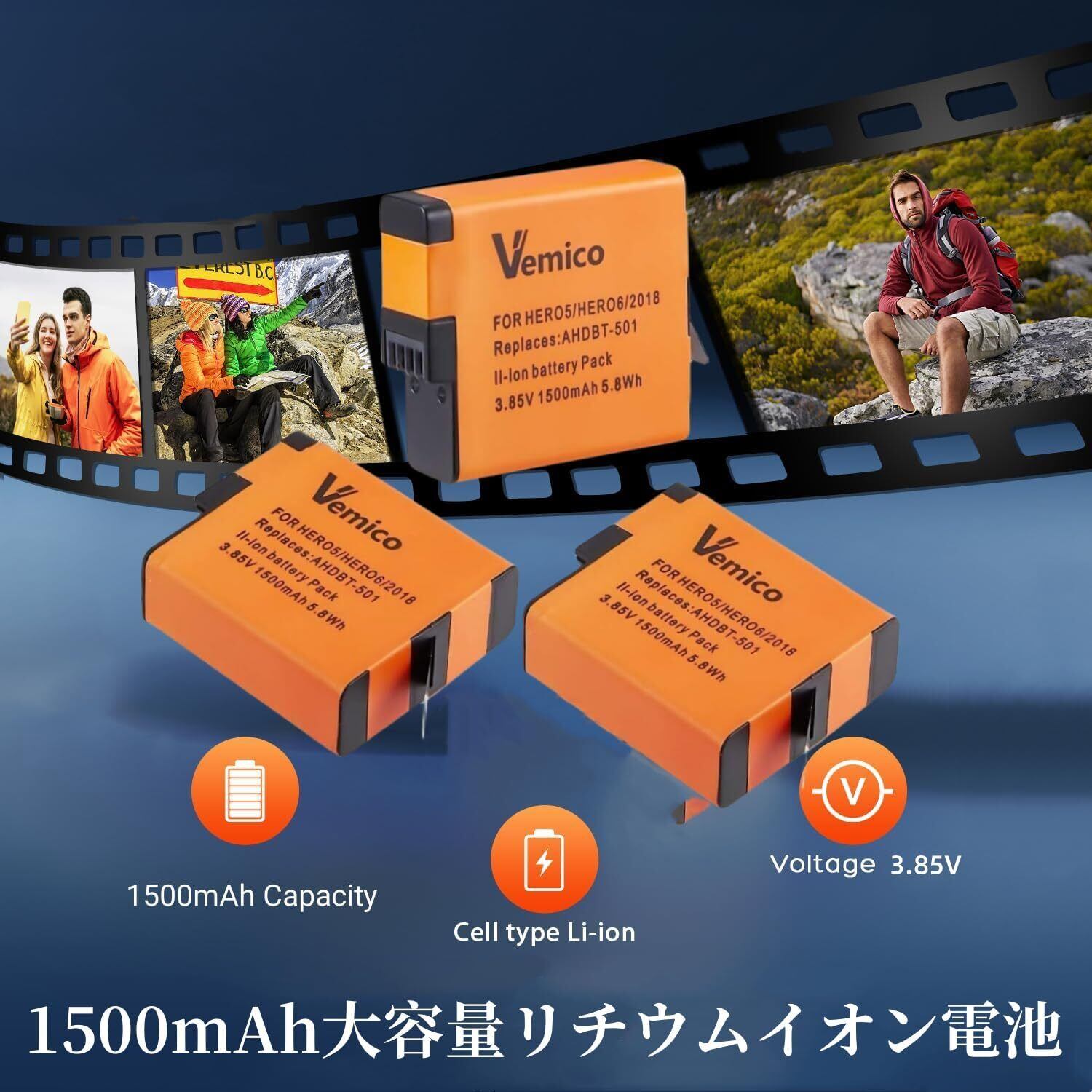 ■特徴: VemicoのHero 7バッテリー充電器セットは、高性能で使い勝手も大変良好です。あなたの撮影ライフを充実させるためにぜひお試しください!