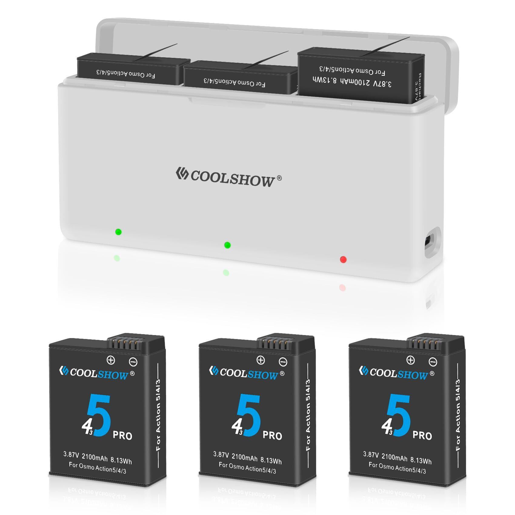 COOLSHOW DJI Osmo Action 5 Pro バッテリー オスモ・アクション 4/3 バッテリー 3個 2100mAhとOsmo Action 5 Pro/4/3 充電器 Type C充電ポート、電池収納ボックスデザイン 対応 DJI Osmo Action 5 Pro,Osmo Action 4 Osmo Action 3 カメラに対応