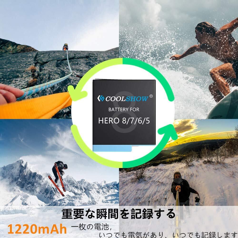 ■【高性能なバッテリーでクリエイティブな撮影をサポート!】COOLSHOWのGoProバッテリーは、GoPro HERO 8、7、6、5に対応しており、1220mAhの大容量を提供します。旅行や冒険の思い出を美しく収めるために、長時間の撮影が可能です。