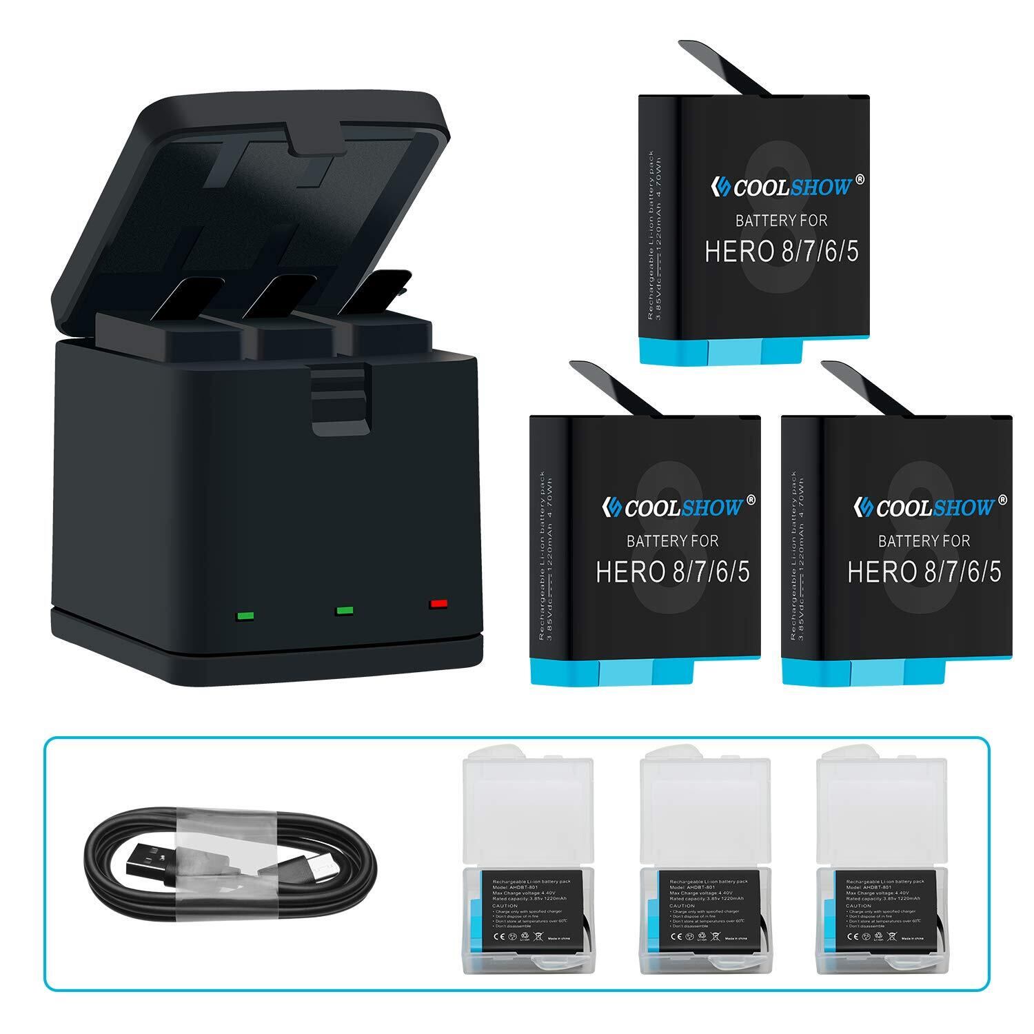 COOLSHOW GoPro HERO 8 バッテリー ゴープロ8 充電器 対応機種GoPro HERO 8 Black,Hero 7 Black,HERO 5ブラックHero 2018 対応 収納ボックス式3ポートUSB充電器付き Type-Cインターフェイス 予備バッテリー 3*1220mAh 交換GoPro 8 7 6 5バッテリー セットチャージャー PSE認証済