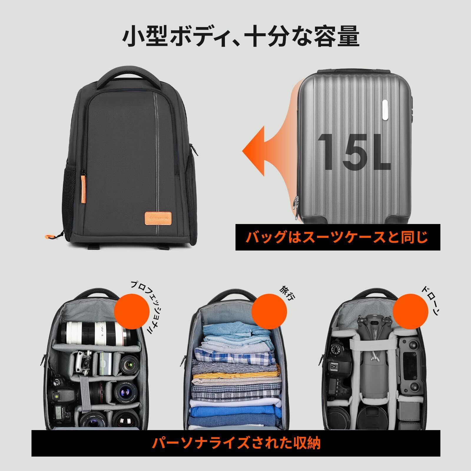 ■特徴: TARIONのカメラバッグリュックは、機能性と利便性を兼ね備えた理想的なパートナーです。新しい撮影体験をサポートするため、ぜひお試しください!