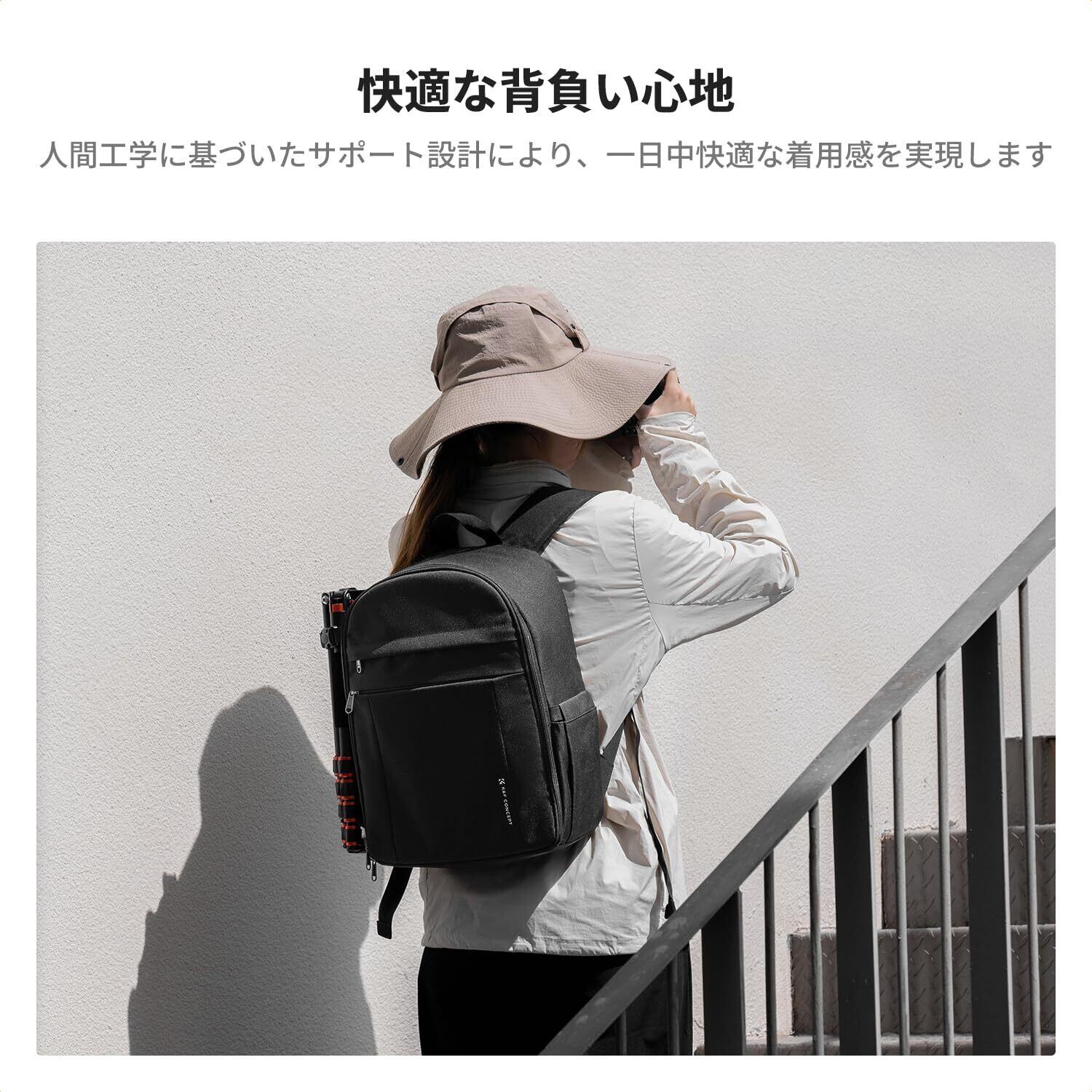 ■特徴: K&F Conceptのカメラリュックは、機能性とスタイリッシュなデザインを兼ね備え、大切な撮影機材をしっかりと保護します。アクティブな撮影ライフをサポートするため、ぜひお試しください!