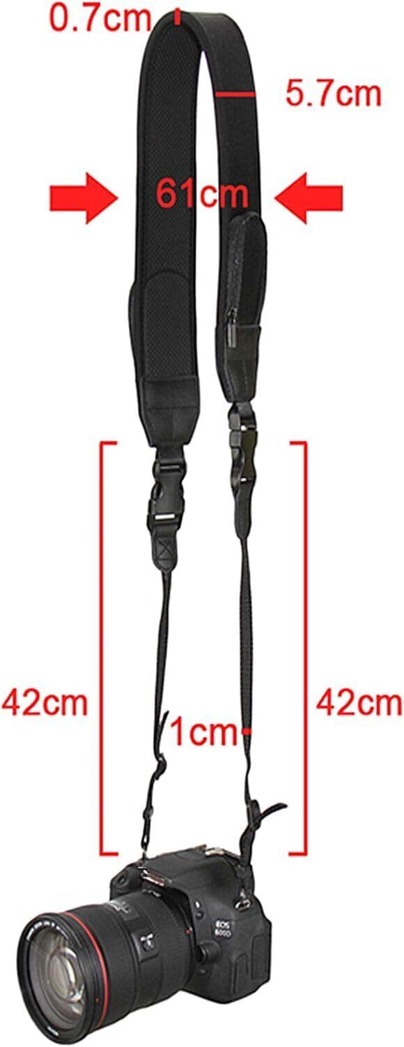 【高品質材質採用&快適性を上げる】高品質のネオプレン素材で作られてカメラストラップで、伸縮性、クッション性があり首や肩への負担が少なくて、頑丈で耐久性があり、耐摩耗性もあります。超柔軟超ソフトで快適性を上げます。側面は滑り止め設計で、撮影時にベルトが絡まないようになっています。このようにして、撮影時の安定性を高めることができます。